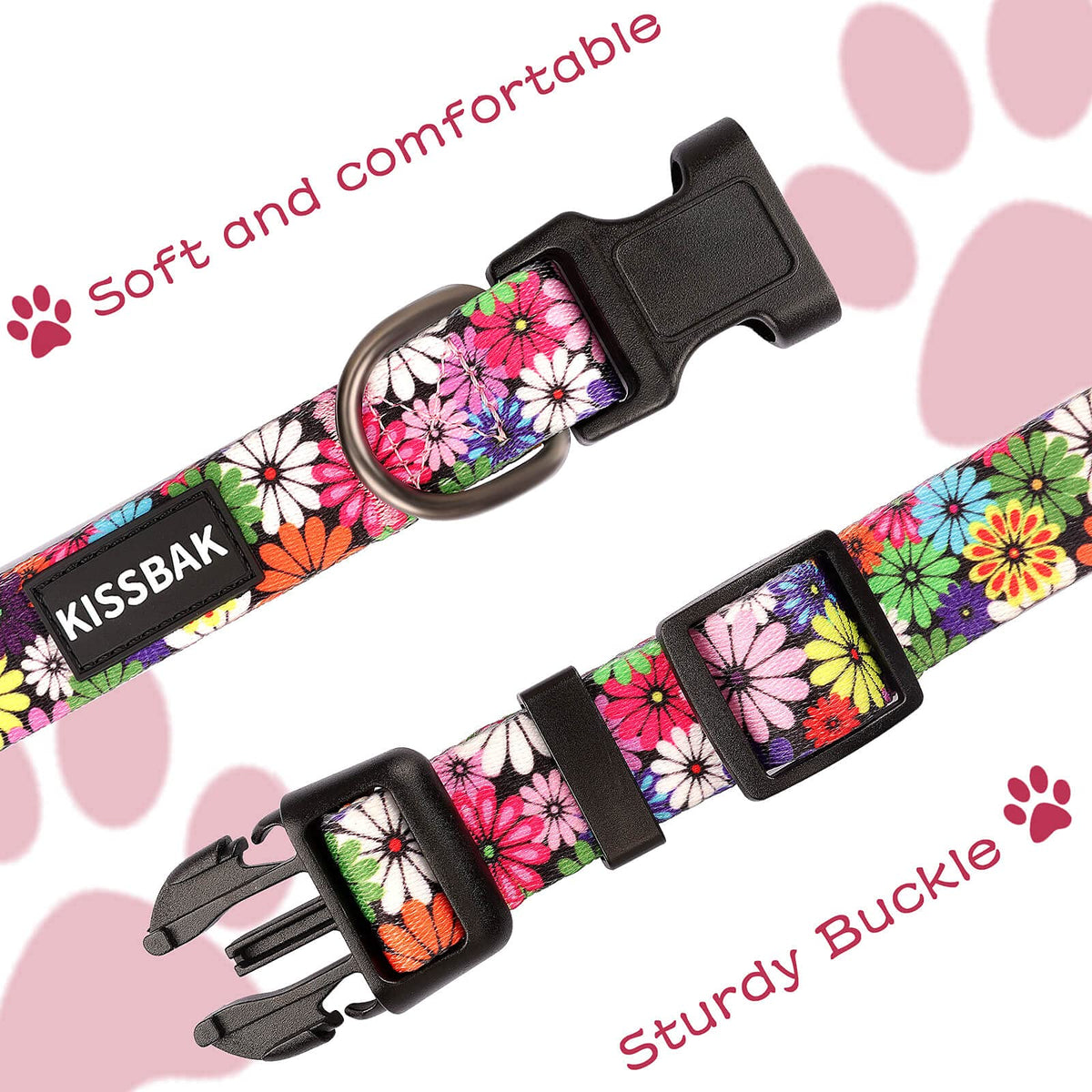 Kissbak Dog Collar For Medium Dogs - Special Design Cute Girl Dog Pet Collar Soft Adjustable Fancy Floral Girl Puppy Dog Collars