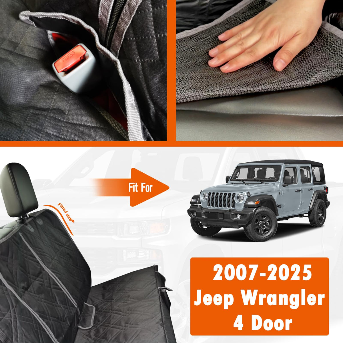 Kistrba Dog Car Seat Cover Compatible With Jeep Wrangler 4 Door 2007-2025, Waterproof Pet Bench Seat Cover For Back Seat, 600D H