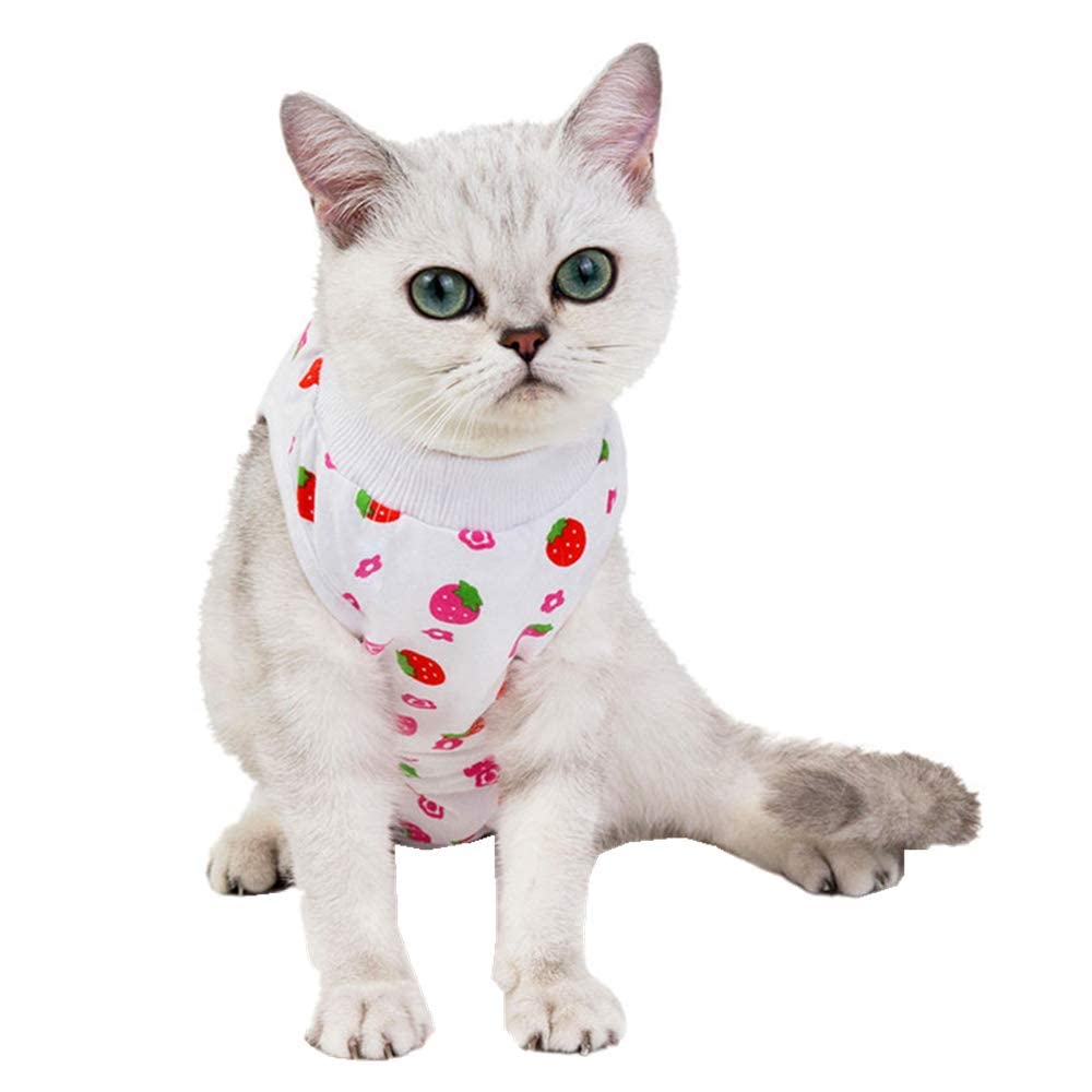 Kitipcoo Professional Surgery Recovery Suit For Cats Paste Cotton Breathable Surgery Suits For Abdominal Wounds And Skin Diseases For Cats Dogs, After Surgery Wear Suit (S (3.3-5.5 Lbs), Strawberry)