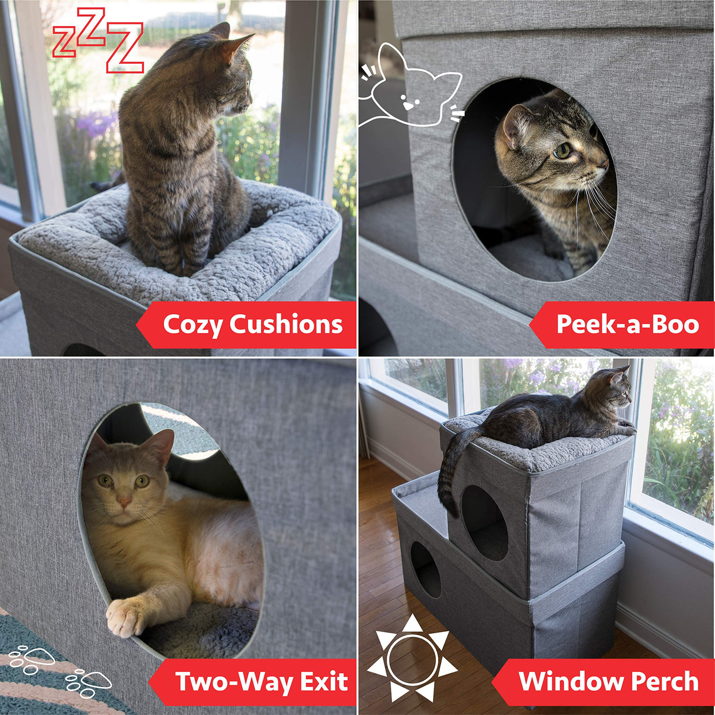 Private Cozy Cave. Check. Perch For Your Cat To Survey His Domain. Check. Plush Pillows For Your Cat To Lounge All Day. Check. Its Just About Everything A Feline Companion Could Love, All In One Place! And The Cat Condo Is Convenient For You As Well - It Sets Up Easily In Just A Few Moments, And Folds Away Flat In The Rare Moments You Want To Put It Away. Better Yet, The Two Included Pillows Are Easy To Wash. Just Remove The Base Support Board And Throw Them In With The Laundry. This Is One Condo You And Your Pet Absolutely Shouldnt Pass Up!