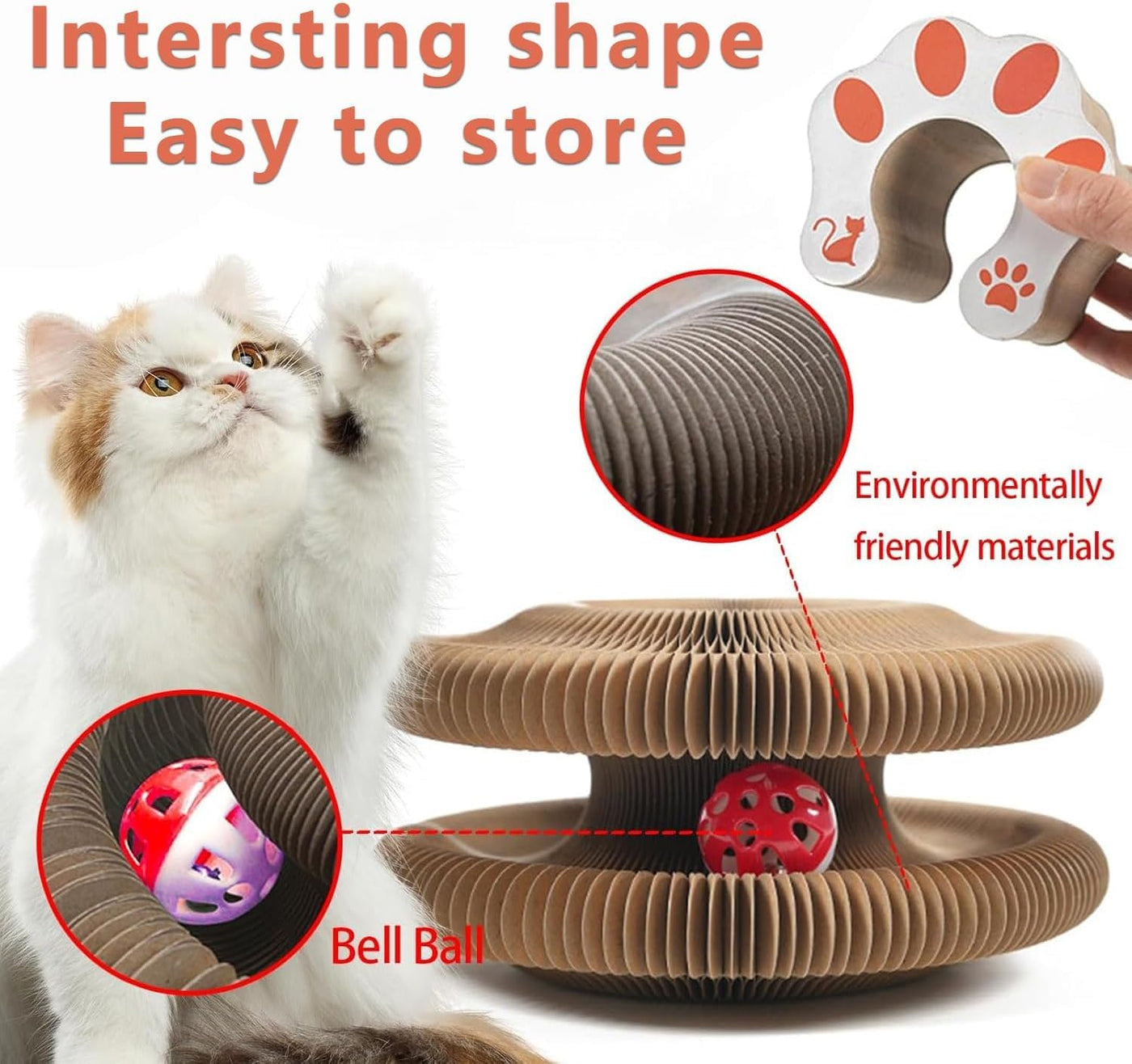 Usage Scenarios:1.Home Playtime: Set Up The Cat Toy In Your Living Room Or Any Area Where Your Cat Loves To Lounge. The Interactive Design Will Keep Them Entertained And Active, Reducing The Risk Of Obesity And Related Health Issues.2.Travel Companion: Its Compact And Portable Design Makes It Perfect For Taking On Trips. Whether Youre Visiting Family Or Going On Vacation, Your Cat Can Have Their Familiar Toy And Scratcher With Them, Reducing Stress In New Environments.3.Interactive Bonding: Use This Toy To Engage In Interactive Play With Your Cat. Roll The Ball Along The Scratch Pad And Watch Your Cat Chase And Pounce, Strengthening Your Bond And Providing Mutual Enjoyment.4.Furniture Protection: Place The Cat Toy Near Furniture To Divert Your Cats Scratching Habits Away From Your Valuable Items. This Will Help Protect Your Couches, Chairs, And Other Surfaces From Claw Damage.Specifications:Product Name: Cat Toymaterial: Natural Cardboardunfolded Dimensions: 9.4 X 9.4 X 4.3 Inches Closed Dimensions: 4.3 X 3.9 X 2.7 Inches Weight: 0.66Lb(Lightweight For Easy Portability)Features: Magic Organ Design, Interactive Scratch Pad, Built-In Ball Suitable For: Cats Of All Sizes And Agespackage Includes:1 Pcs * Cat Toy1 Pcs * Ball Toy