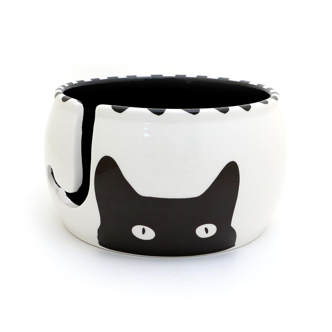 This Handmade Ceramic Yarn Bowl Makes A Great Gift For A Cat Loving Person Who Knits Or Crochets! Featuring A Cat Who Is All Ears. This Is A Handmade Yarn Bowl Created From Stoneware Clay In Our Studio- Kiln Fired To Over 1900 Degrees. The Interior Is Black, Exterior Glossy White With A Black Cat. Measures 6.25 W X 3.5 H.