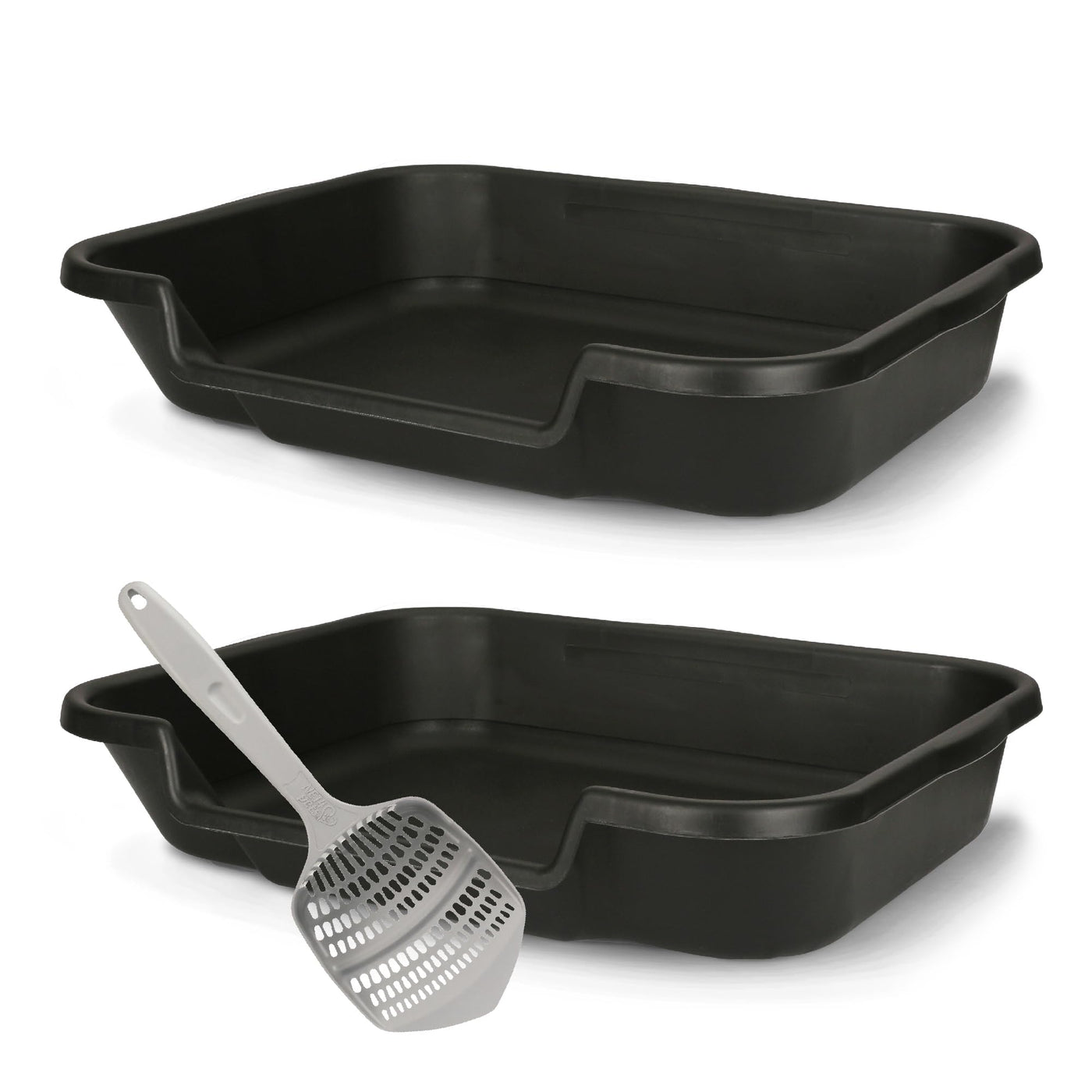 KittyGoHere Senior Cat Litter Box 2 Pack, Large Black Low Entrance Kitty Litter Box, Sized for Cats Comfort, Perfect for Senior