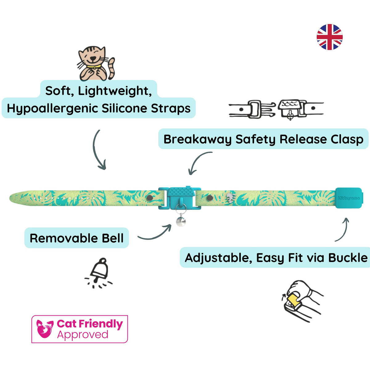 What Makes Kittyrama Cat Collars The Best In The Land? Unbeatable Comfort: Our Silicon Straps Are So Soft, Smooth And Lightweight, Cats Forget They Have Their Cat Collars On (Except When They Become The Envy Of All The Other Cats In The Neighbourhood.) Hypoallergenic, Breathable, Waterproof: Unlike Fabric And Leather Cat Collars, Our Hypoallergenic Straps Help To Protect The Neck Area From Moisture And Heat, For Less Chances Of Irritation. Ultra Safe: Featuring Quick Release Break Away Clasps, Designed To Open If A Cat Finds Themselves Caught In An Adventure (The Break Away Clasps Open As Cats Pull With Their Bodies To Free Themselves). Perfect Fit: Tailor The Fitting To Your Cats Neck Via The Buckle With Holes. Our Patented Design Wont Let The Fitting Move With Wear, Ensuring Comfort And Safety Every Day. Recommended By Vets And Welfare Experts: Kittyrama Collars Are The Only Cat Collars To Receive A 'Cat Friendly' Award By International Cat Care, The Global Charity For The Welfare Of Cats. We Are The Cats That Got The Cream! Kitten Size Or Adult Size? Kittens And Adult Cats Have Very Different Physiques And Strength, And For Safety And Comfort Require Different Cat Collar Sizes And Break Away Clasps! Our Kitten Collars Fit Neck Sizes Between 5.7 Inch And 7.3 Inch Our Adult Cat Collars Fit Neck Sizes Between 7.7 Inch - 10.4 Inch Please Measure Your Cat'S Neck Before Purchase To Ensure A Safe Fitting Can Be Achieved. Super Stylish: As Seen In Vogue Magazine. We Are So Confident Your Cat Will Rock Them So Much, We Are Sorry In Advance For Any Increase In Cattitude.