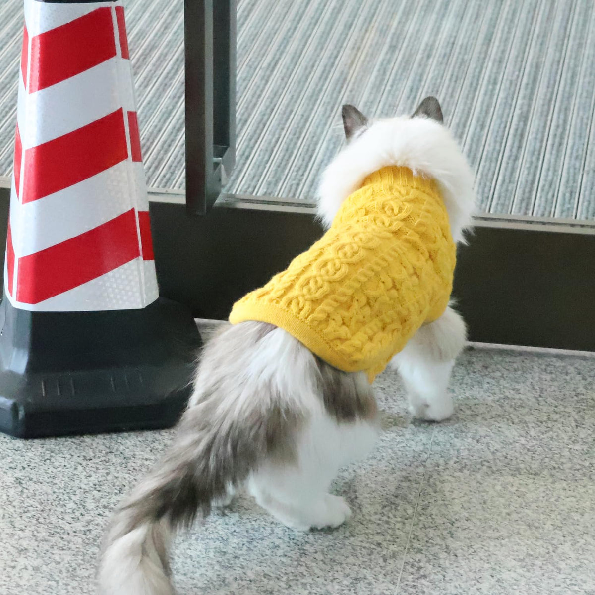 Knitted Warm Cat Clothes, Fall Winter Soft Pet Coat Sweater, Thermal Knitwear Apparel For Cats, Yellow (Small)