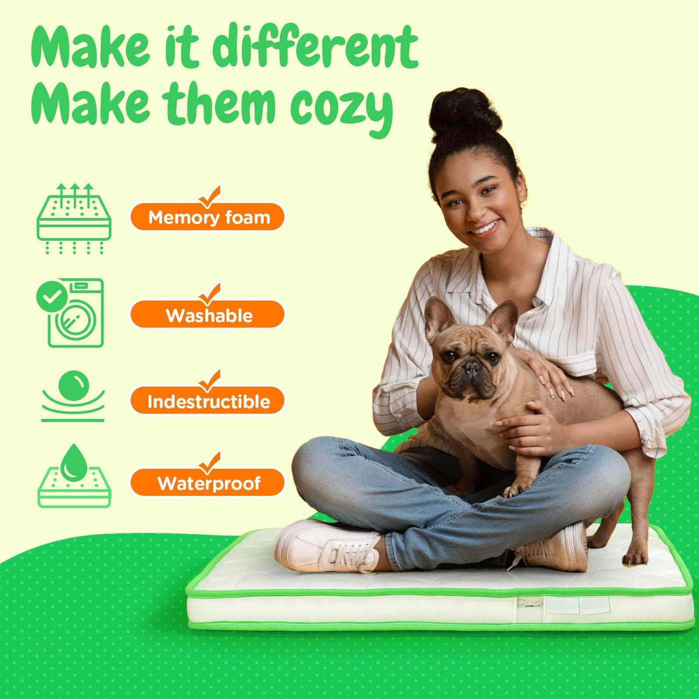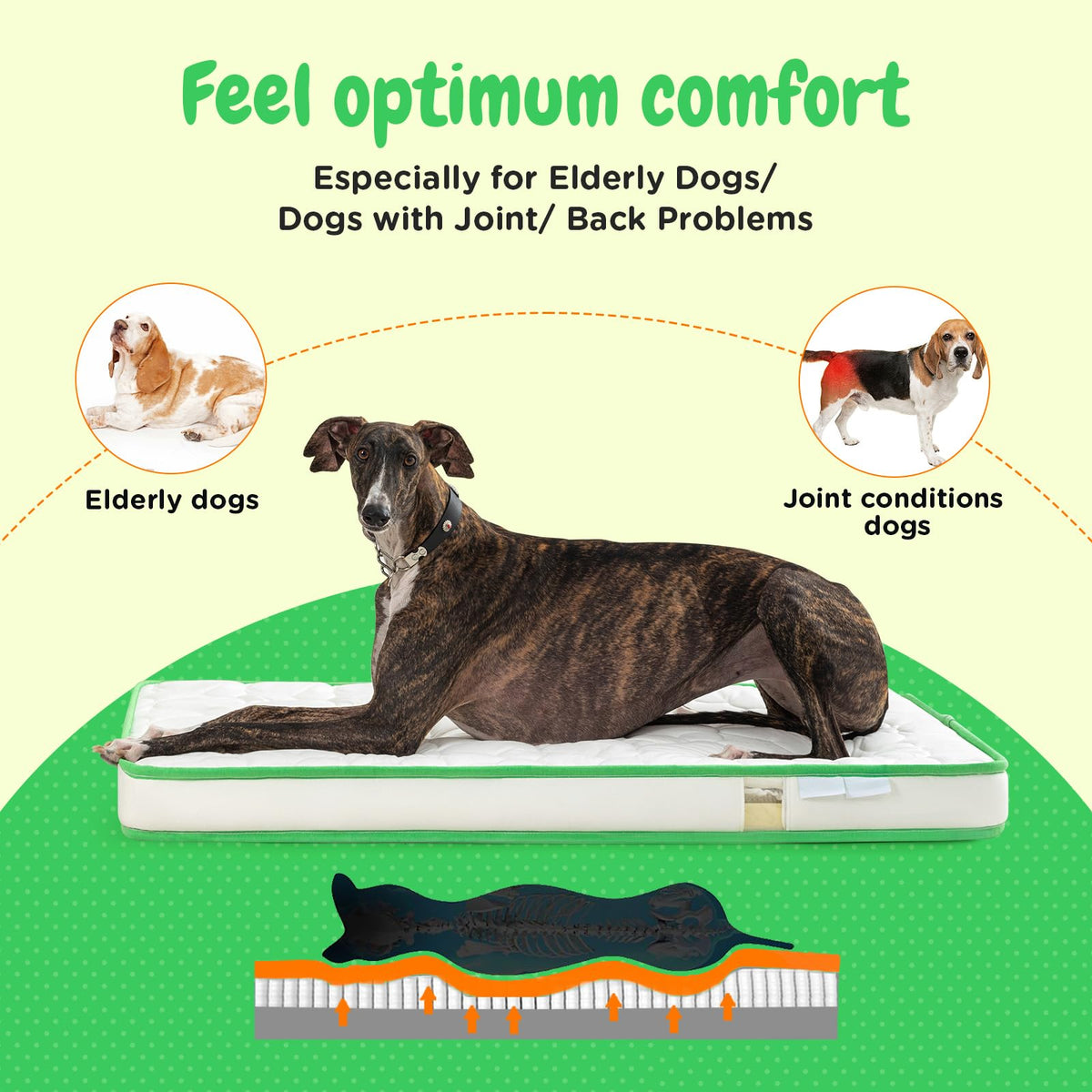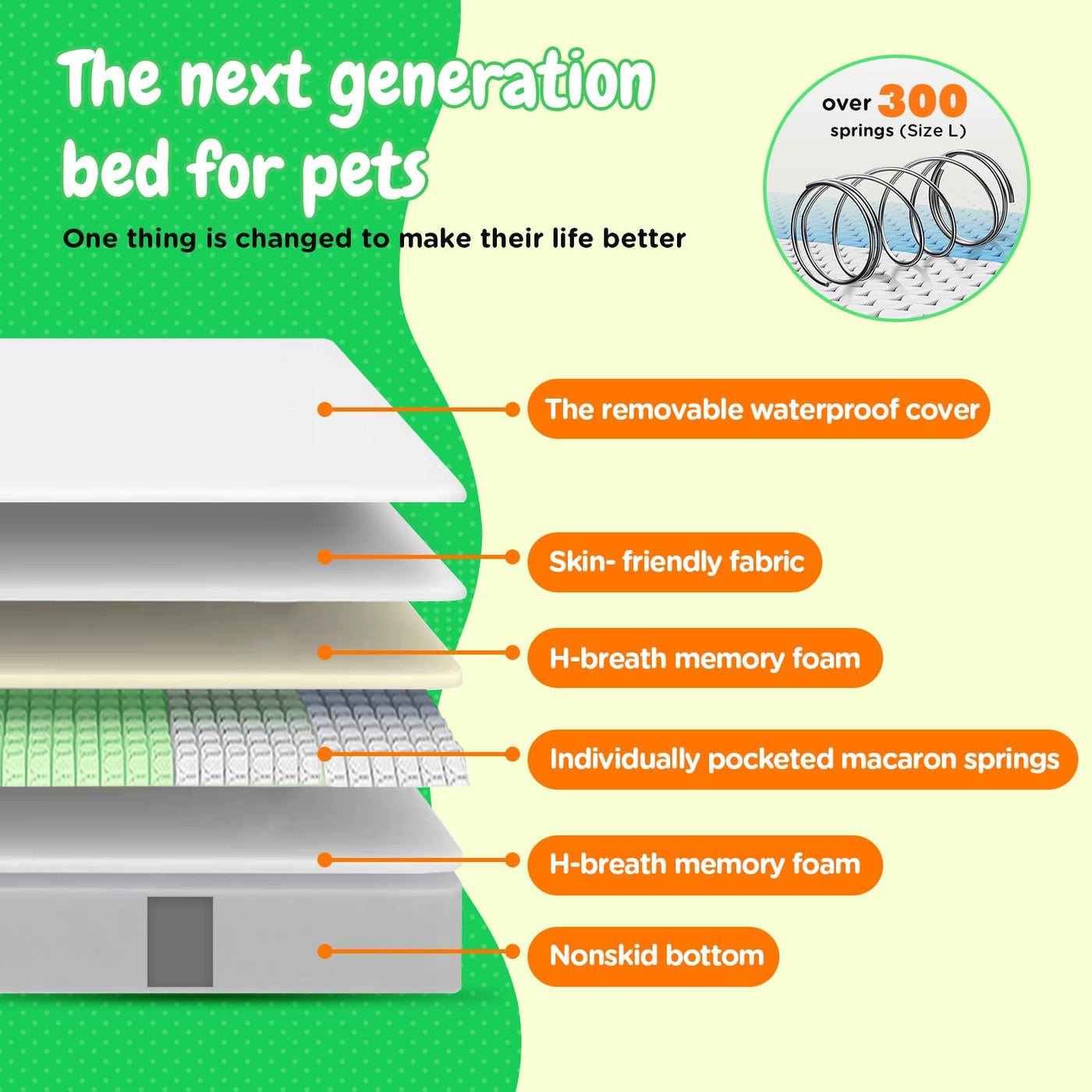 Our Core Technology, The Advanced Ergonomic Support, We Combined Individually Pocketed Macaron Springs And H-Breath Memory Foam To Create A Suitable And Indestructible Orthopedic Mattress For Our Loves Fido Of All Ages. The Individually Pocketed Macaron Springs Boost Better Support, H-Breath Memory Foam Adjusts To Dogs Body, Makes Them Even Cozier, Soothes Them To Sleep. Also, We Do Have The Removable And Chew-Proof Dog Bed Cover: Durable, Waterproof, Dirt And Rip Resistant. Machine Washable: Remove The Cover And Wash It In Cold Water, Tumble Dry Low.