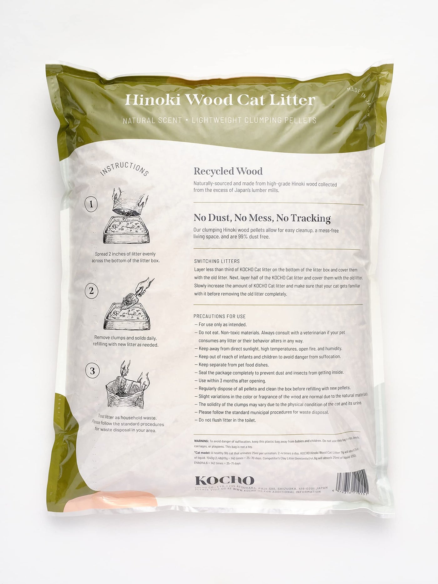 KOCHO Hinoki Wood Cat Litter, Upcycled, Ultra Lightweight, Natural Aroma of Hinoki Japanese Cypress, Gentle Clumping, Dust-Free