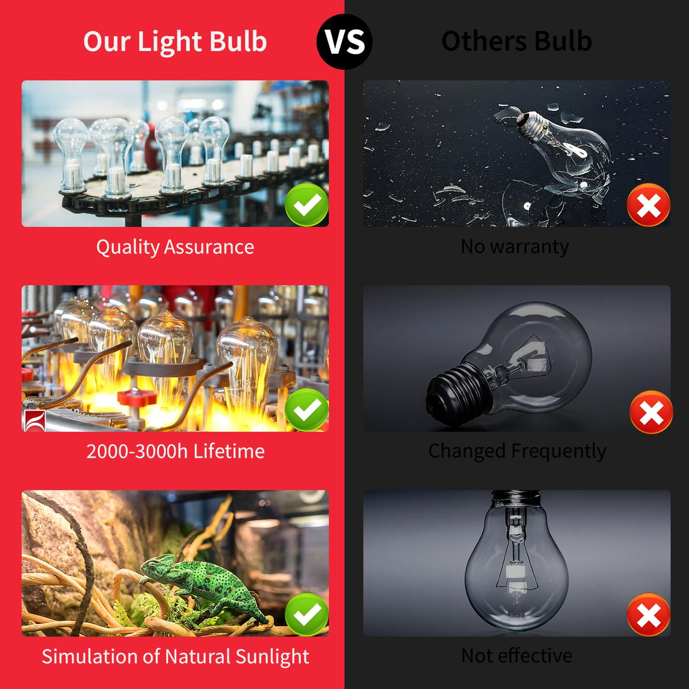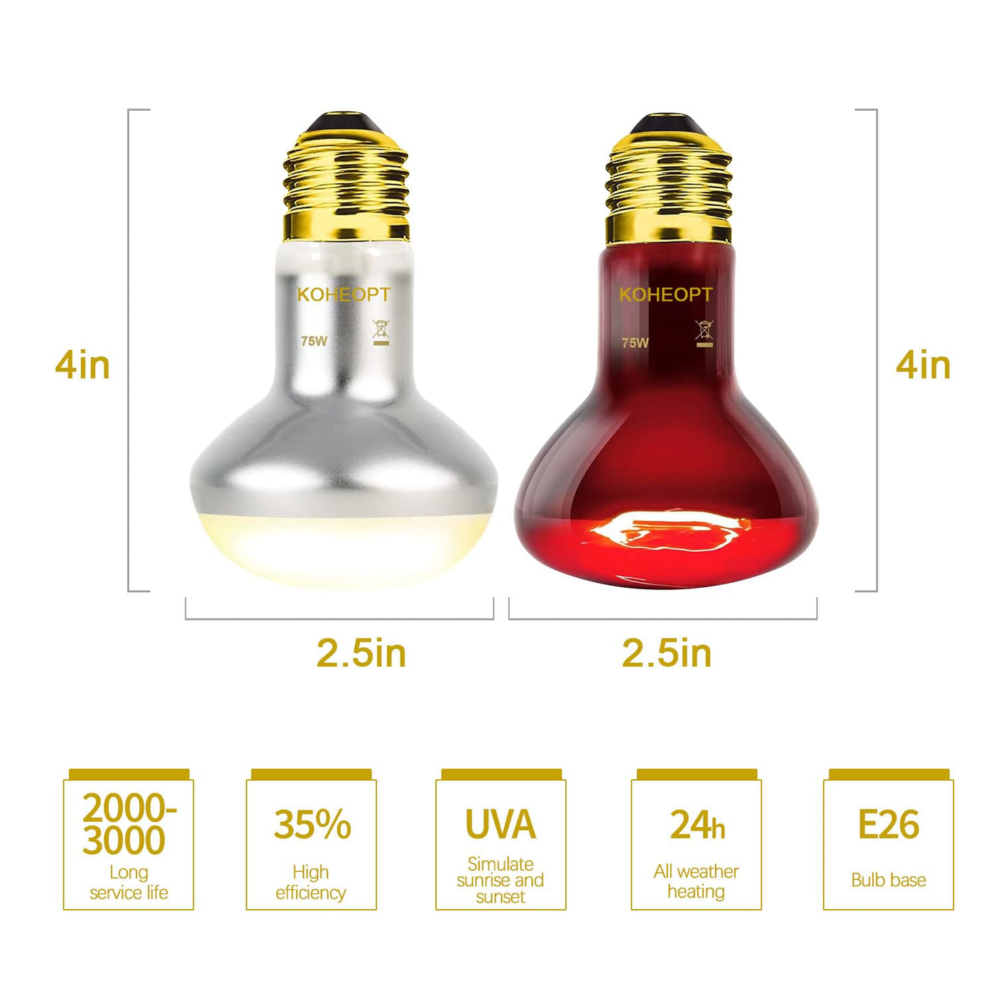 Koheopt 75W Reptile Heat Lamp Bulb 2-Pack,Complete Day & Night Basking Spot Light Combo Including Infrared Heat Lamp And Uva Day