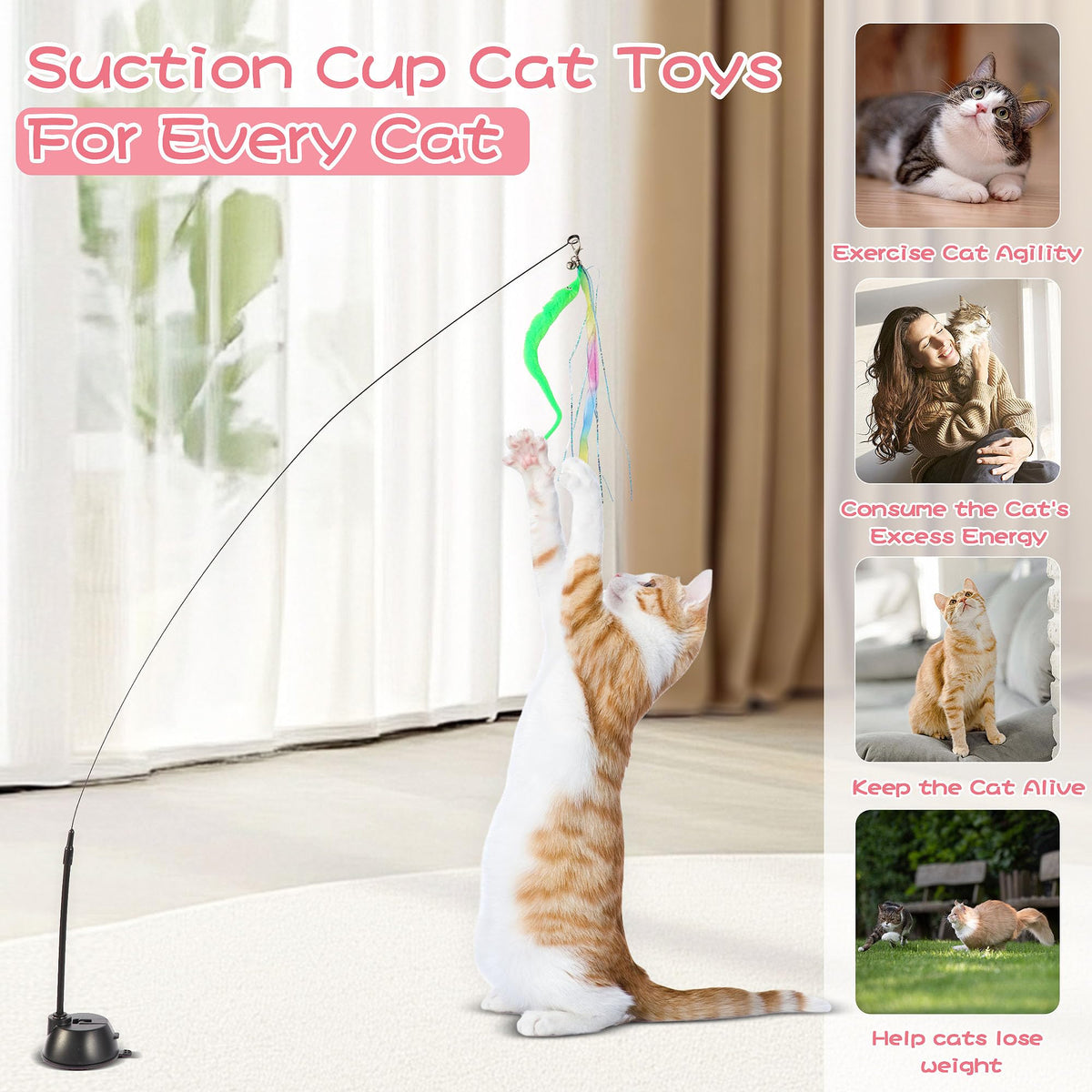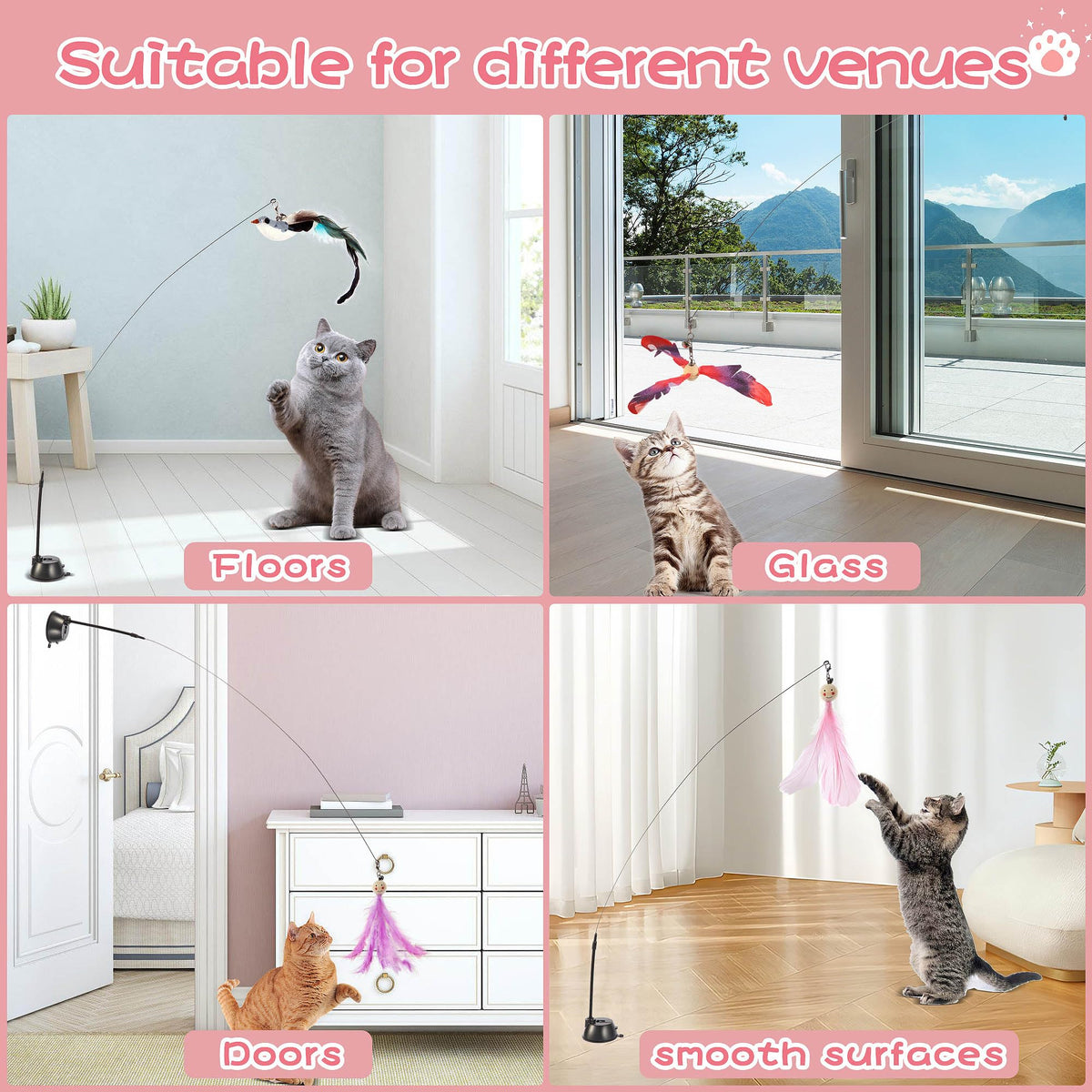 A Bored Cat That Sleeps All Day Is Not A Healthy Cat.It'S Important To Provide Them With Stimulating Toys That They Can Use Even When You'Re Not Around.The Kojude Cat Wand Toy Set Includes 1 Colorful Simulation Birds And 5 Feather Toy To Engage Your Cat'S Eyes And Attention, Providing Exercise And Stimulation. Keeping Your Cat Entertained Also Prevents Destructive Behavior. With 1 Self-Holding Base And 2 Wire That Flutters Around As Your Cat Paws And Plays With The Bird, It Creates The Perfect Real-Life Bird Impression That Gives Even More Drift And Attraction For Your Cat To Play.Other Replacement Toys As Well. Experience An Upgraded Playtime With The Enhanced Wire And Base Design.Our Toy Is Now Even More Durable, Ensuring Long-Lasting Entertainment For Your Furry Friend.So Your Kitty Can Continue Pouncing On Their Favorite Feathered Friend. Requires No Interaction From You; Your Cat Can Play Whenever They Want, Even If Youre Not Home. The Suction Cup Base Can Be Attached Horizontally And Vertically To Any Flat And Hard Surface Such As Hardwood Floors, Tiles, Or Windows. Pro Tip: To Ensure A Rock-Solid Hold For Your Toy, Clean The Suction Cup And The Target Area On Your Floor Before Clamping The Toy In Place.