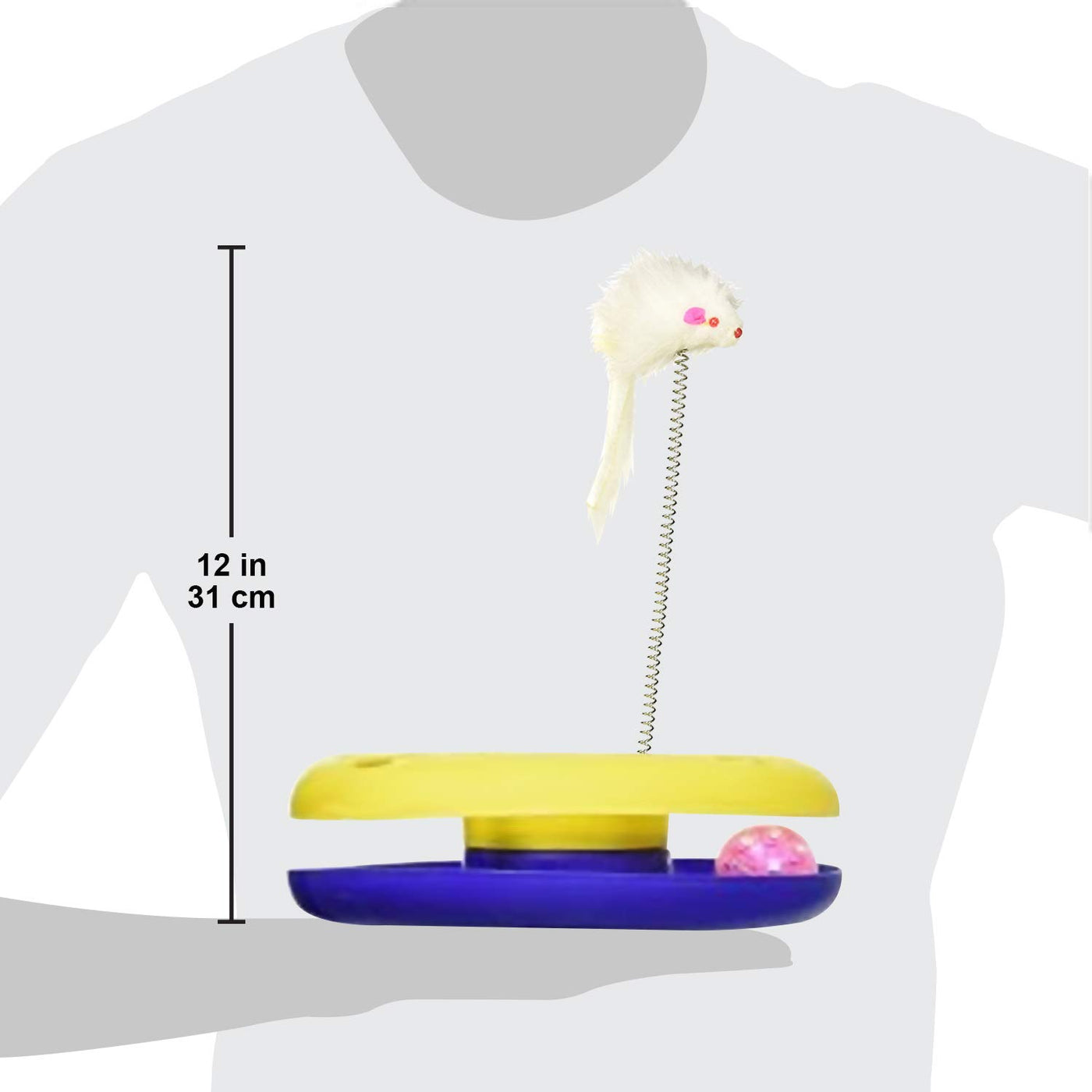 Package: 1Keep Your Cat Busy For Hours With This Fun Ball Track Cat Toy With 12'' Mouse Swatter. Features A Two-Toned Plastic Track With A Ball With A Bell Inside And A Furry Realistic White Mouse On A Metal Spring Swatter. Track Measures Approximately 9.5'' X 9.5'' X '' With A 12'' Tall Swatter. Comes Packaged In An Individual Box. Colors: Transparent White Yellow Blue Silver Pink