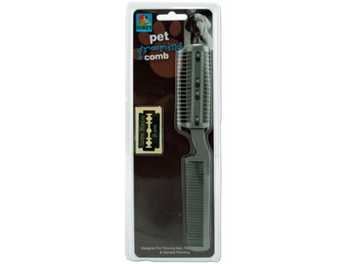 Designed For Thinning Hair Removing Mats And General Trimming This Pet Grooming Comb Is The Perfect Grooming Tool. Comb Is Double-Sided: One Side Has A Razor Comb For Trimming Hair While The Other Side Has A Standard Comb For Removing Excess Fur. Set Comes With A 2 Extra Razor Blades. Comb Measures Approximately 8'' Long. Comes Packaged In A Clam Shell.