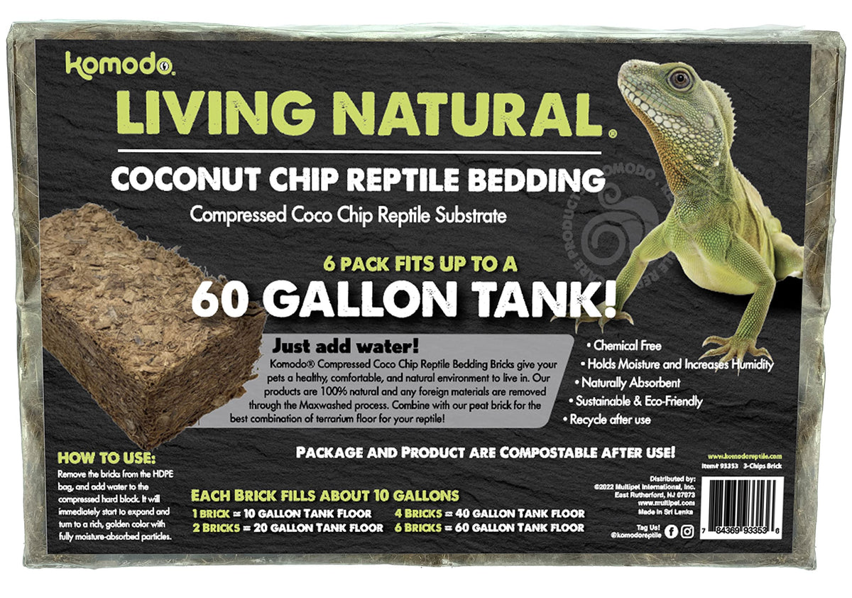 Komodo Coconut Chip Reptile Bedding Bricks Give Your Pets A Healthy Comfortable And Naturalistic Environment To Live In. 100% Natural Any Foreign Materials Are Removed Through The Max-Washed Process.