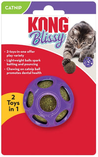 Q: How does the catnip in the Blissy Moon Ball enhance my cat's play experience?A: The KONG Premium North American Catnip used in the Blissy Moon Ball is potent and enticing, which helps stimulate your cat's natural hunting instincts. This makes playtime more exciting and enjoyable, giving your cat a multi-sensory experience.