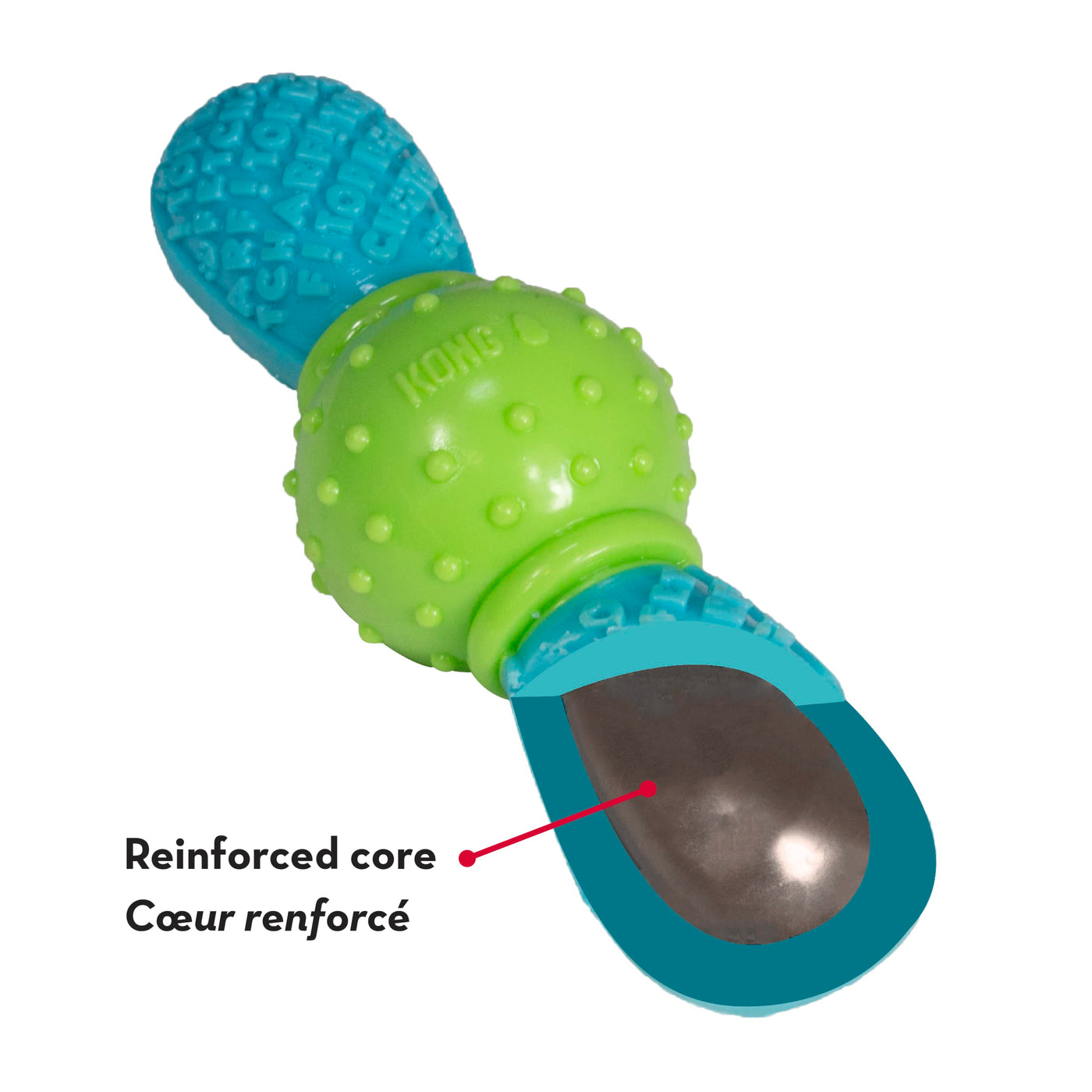 KONG CoreStrength™ is built to last and is sure to bring excitement while providing extended play sessions along the way. The durable KONG-crafted multilayered core stands-up to long-lasting chew sessions while meeting a dog’s natural chewing instincts. The reinforced layers within the core add extra toughness making it great for chewers. The exterior textured words add to the fun and have the added benefit of cleaning teeth and gums. Ideal for independent play and interactive toss and retrieve, KONG CoreStrength™ is sure to delight the most playful of dogs. Covered by KONG Satisfaction Guarantee. See KONG Satisfaction Guarantee document below for full details.
