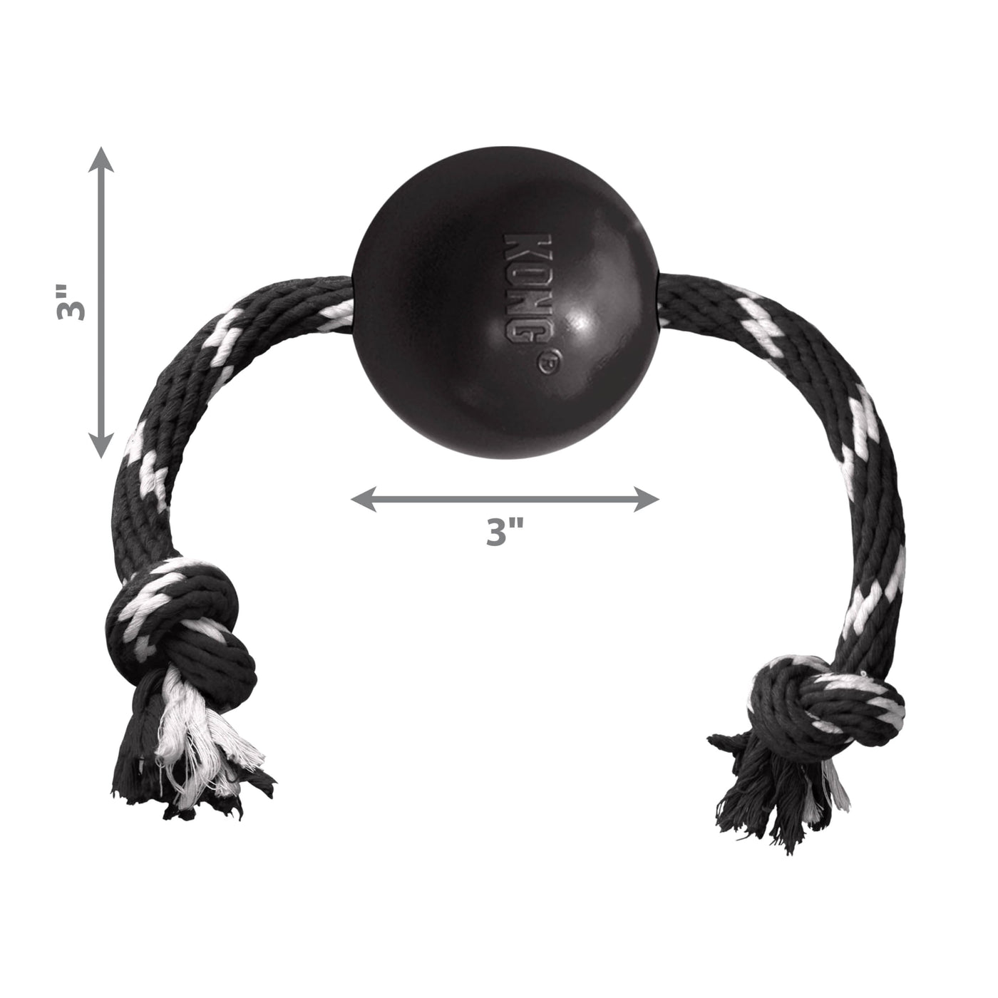 The Extreme KONG Ball with Rope adds long-lasting diversity to games of fetch and tug. Made from KONG Extreme rubber, the ball is designed for durability for long-lasting interactive play. The 100% cotton rope also rewards appropriate chewing behavior while massaging teeth and gum. All of this adds up to playful bouts of mentally stimulating and enriching engagement.