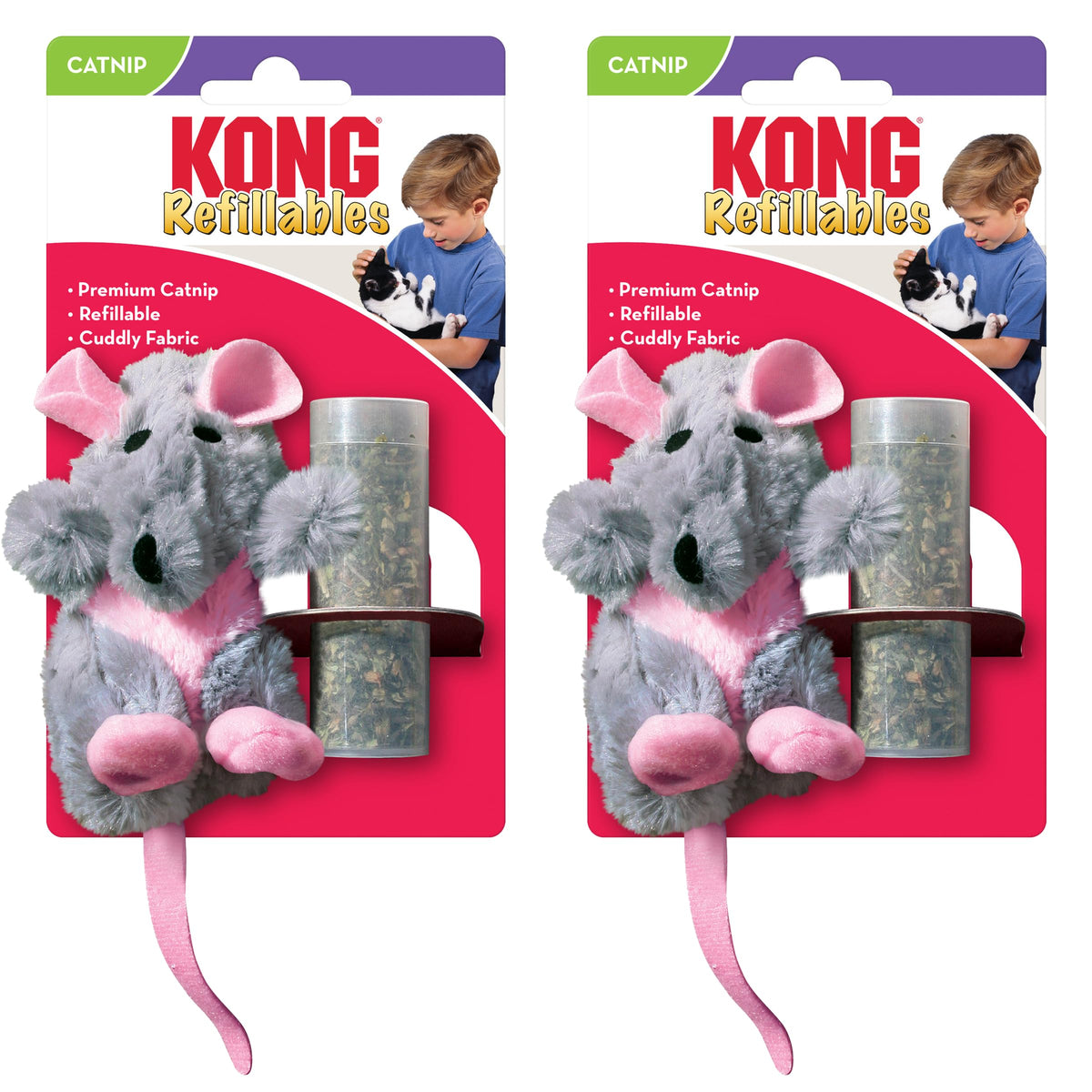 Kong Refillables Catnip Toys, Assorted 2-Pack - Plush Cat Toys With Refillable Catnip Pouch & Premium North American Catnip (Rat