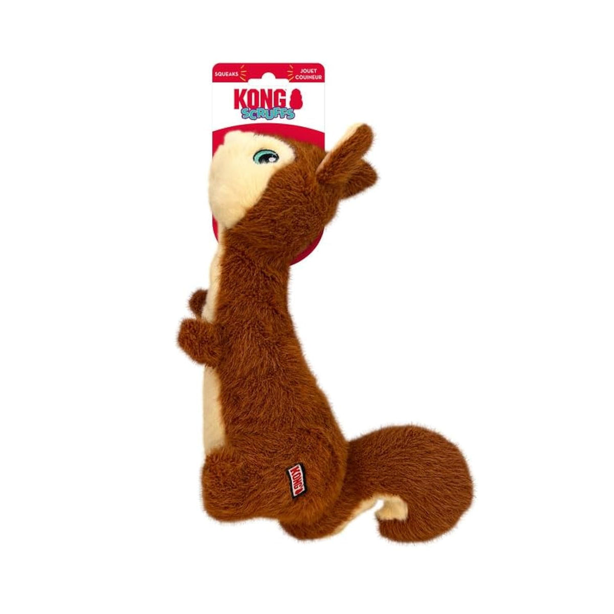 With KONG Scruffs, your dog wont have to reach far for extended amounts of playtime! The Scruffs characters elongated necks are filled with a uniquely textured super-squeaker to keep your dog squishing, thrashing, and playing, while the bodys soft plush is ideal for snuggle time. These long necks also make the perfect handle for dogs who love to carry their toys around.