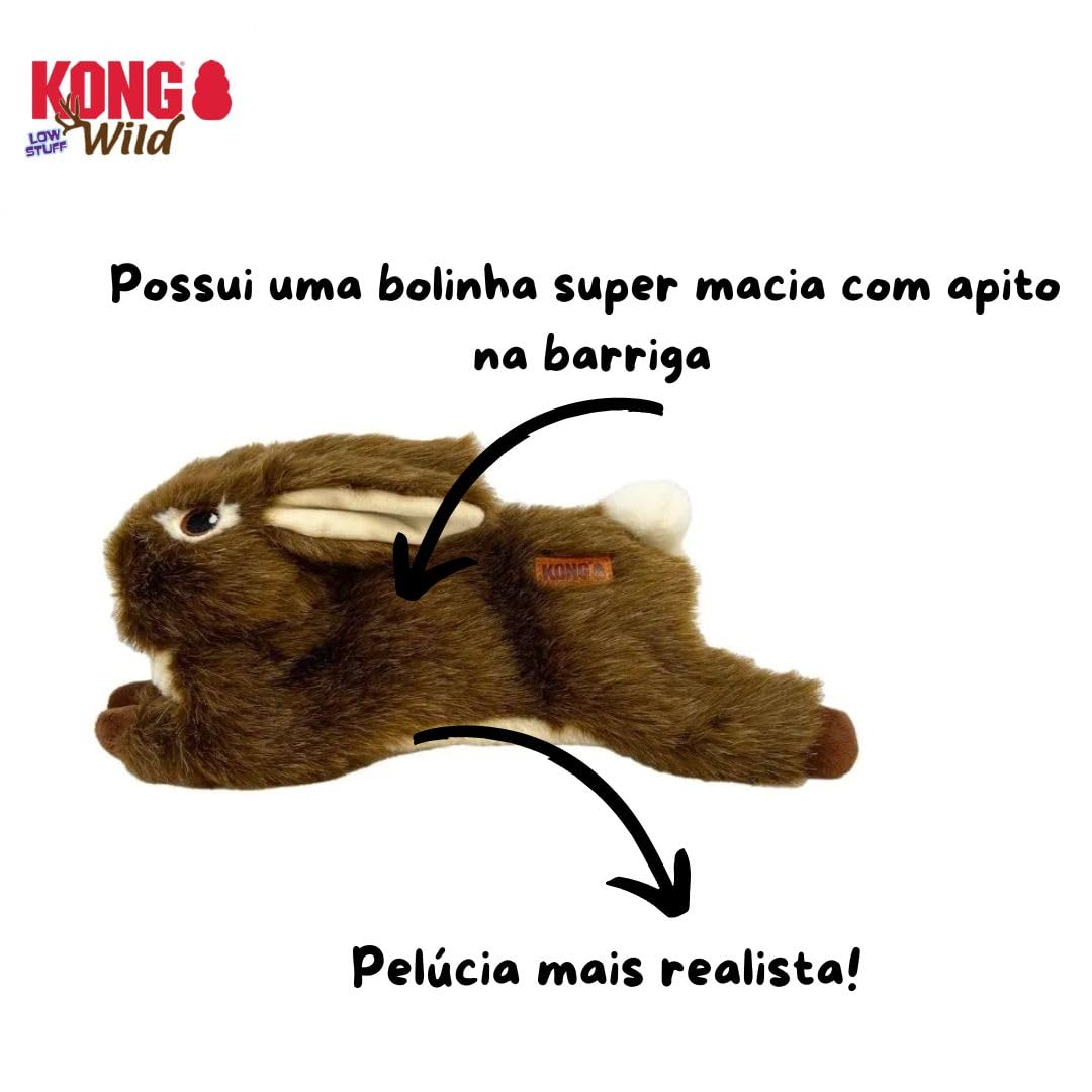 Kong Wild Low Stuffing Dog Toy - Rabbit - Durable Plush Toy With Squeaker - Minimal Stuffing For Less Mess - Soft Chew Toy For S