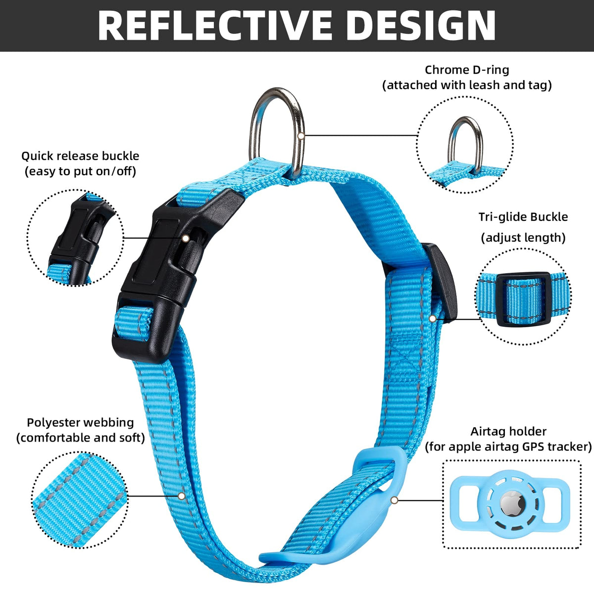 Konity Airtag Cat Collar, Compatible With Apple 2021, Nylon Pet Kitten Puppy Collar With Silicone Holder For Small Dogs, Blue,Xs: 8''-12'' Neck