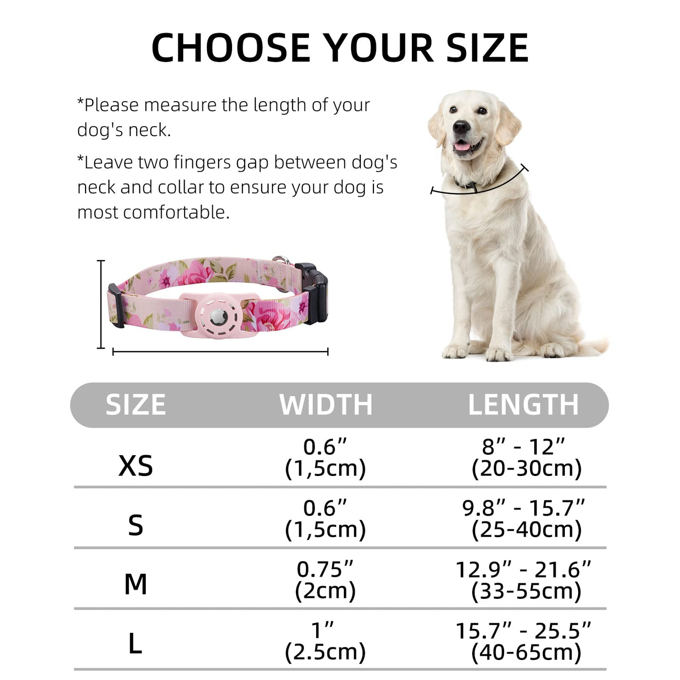 Konity Airtag Dog Collar, Compatible With Apple Airtag, Polyester Pet Cat Puppy Collar With Silicone Airtag Holder For Small, Medium, Large, & Extra Large Dogs, Pink Rose, S: 9.8''-15.7'' Neck