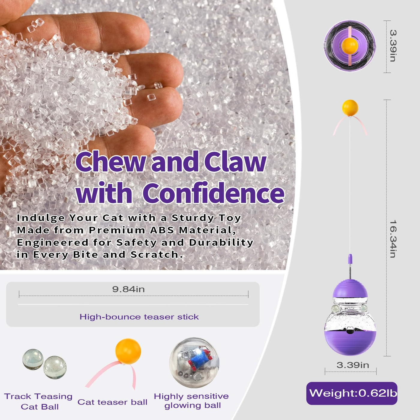 KONOATOR Interactive Cat Toy - Engaging Tumbler Design with Teaser Wand & Treat Dispenser - Durable, Non-Toxic, and Safe for Ind