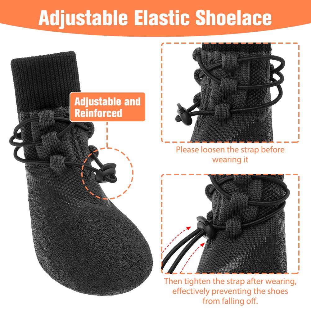 Anti-Slip Dog Boots 4 Packs - Adjustable Dog Socks with Shoelace Waterproof Dog Sock Shoe for All Seasons Super Durable Pet Paw Protector for Indoor and Outdoor Medium and Large Dogs