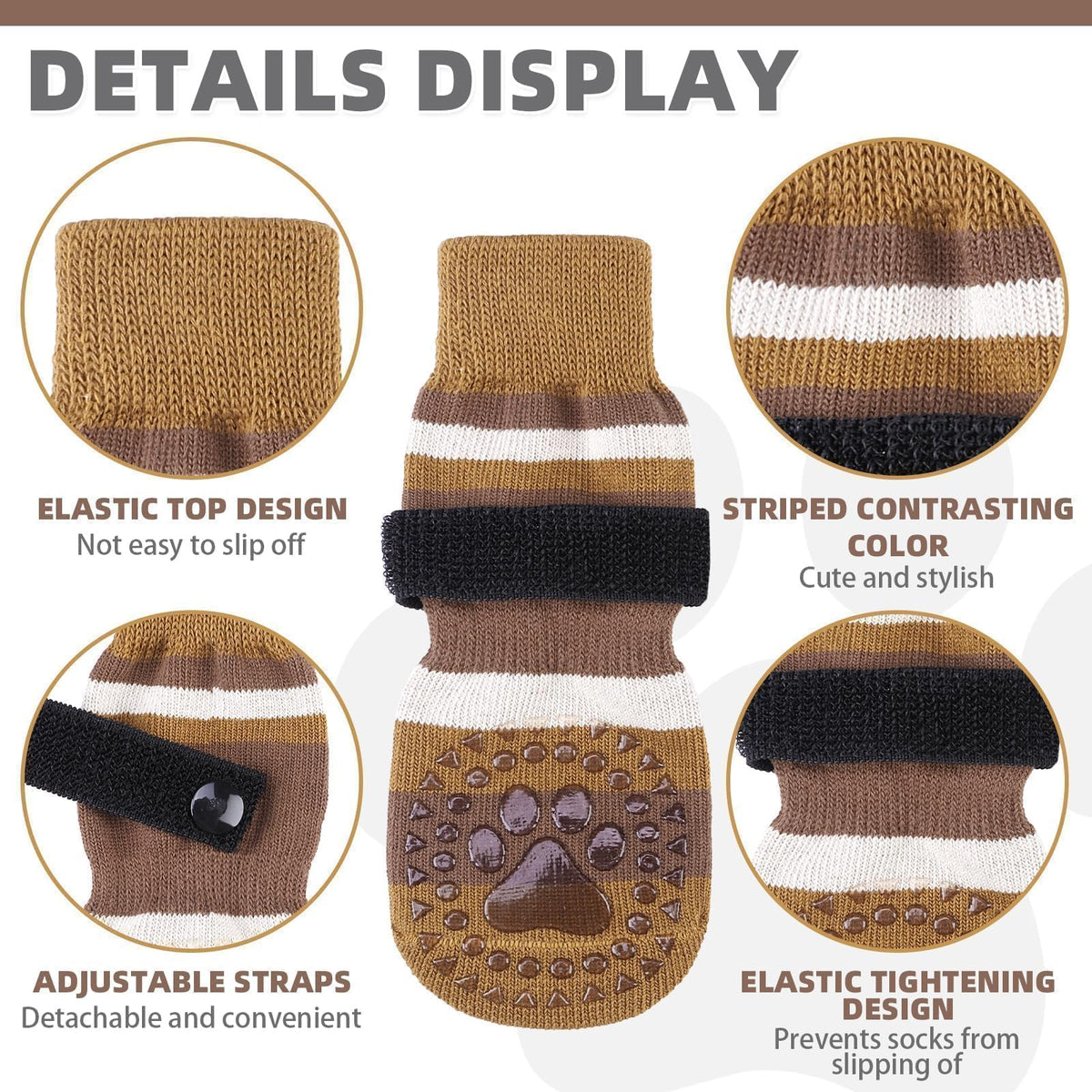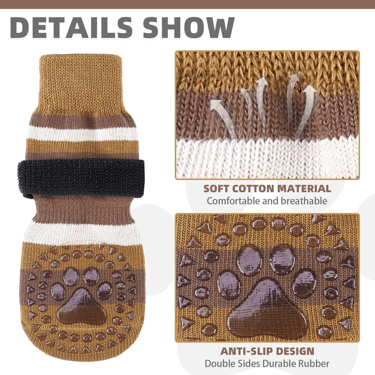 KOOLTAIL Anti Slip Dog Socks for Cold Pavement to Prevent Licking Paws with Grippers, 3 Pairs Winter Paw Protector, Double Sides
