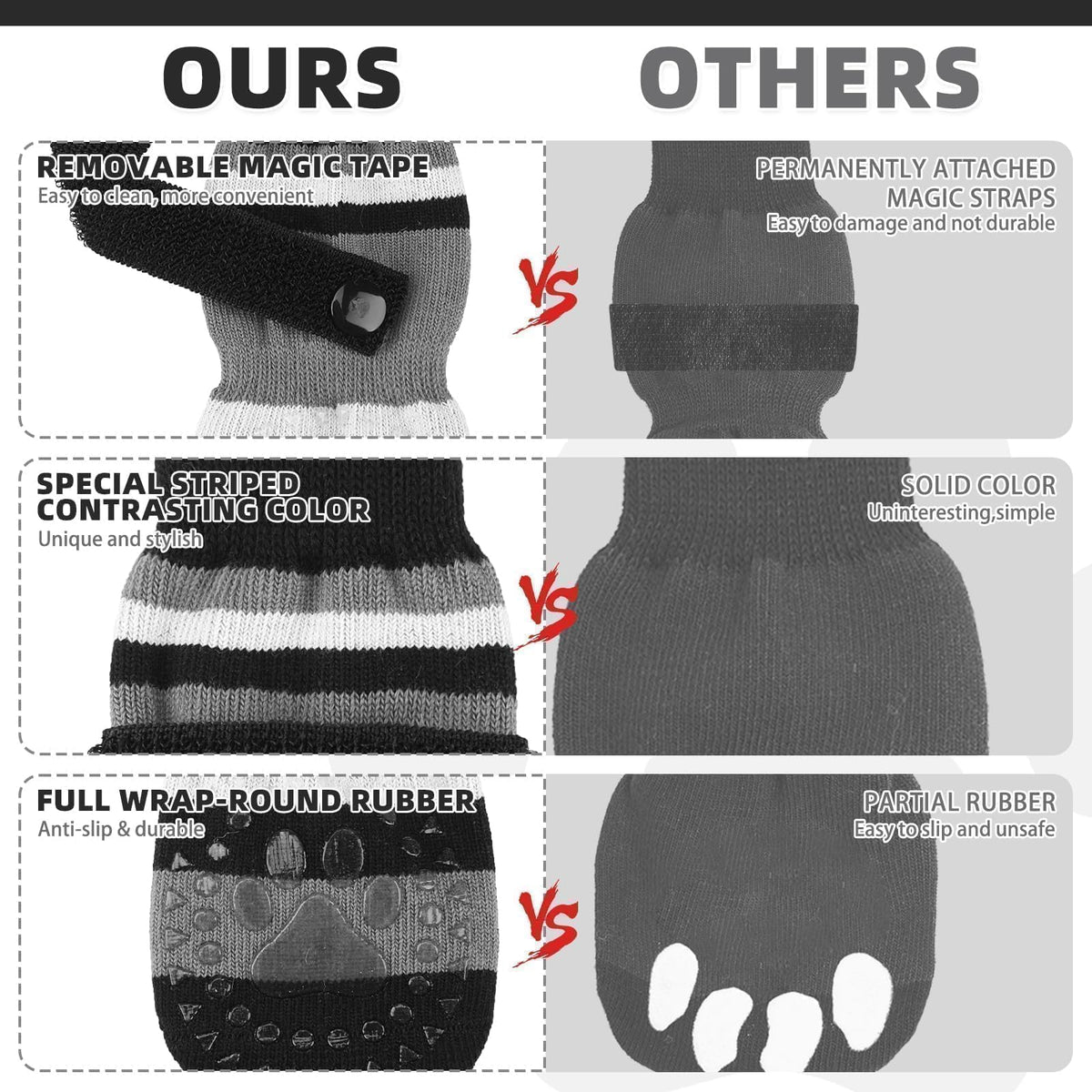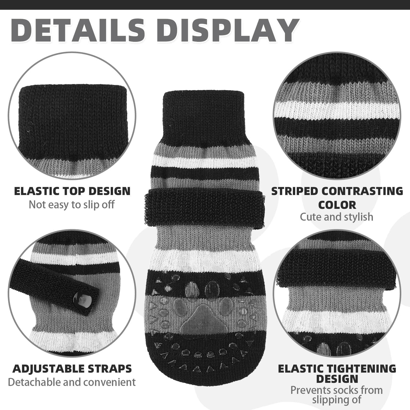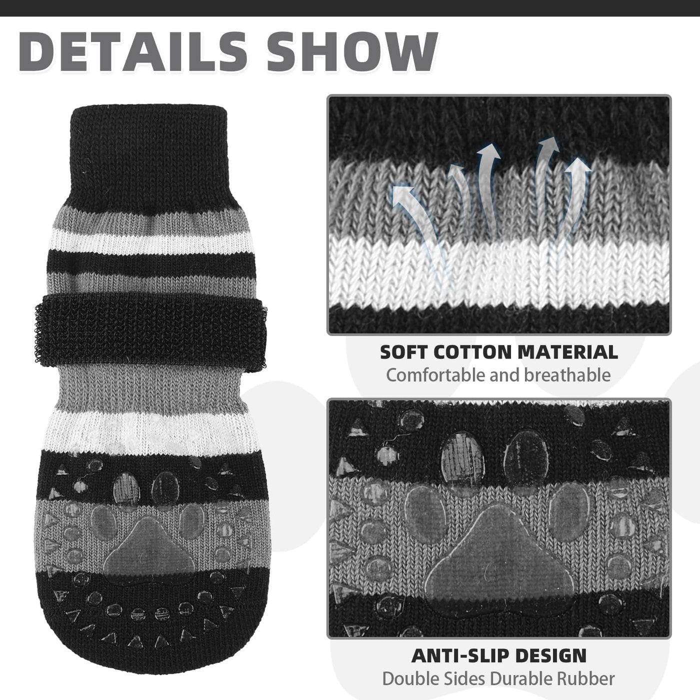 KOOLTAIL Anti Slip Dog Socks for Cold Snow Pavement to Prevent Licking Paws with Grippers, 3 Pairs Paw Protector, Double Sides S