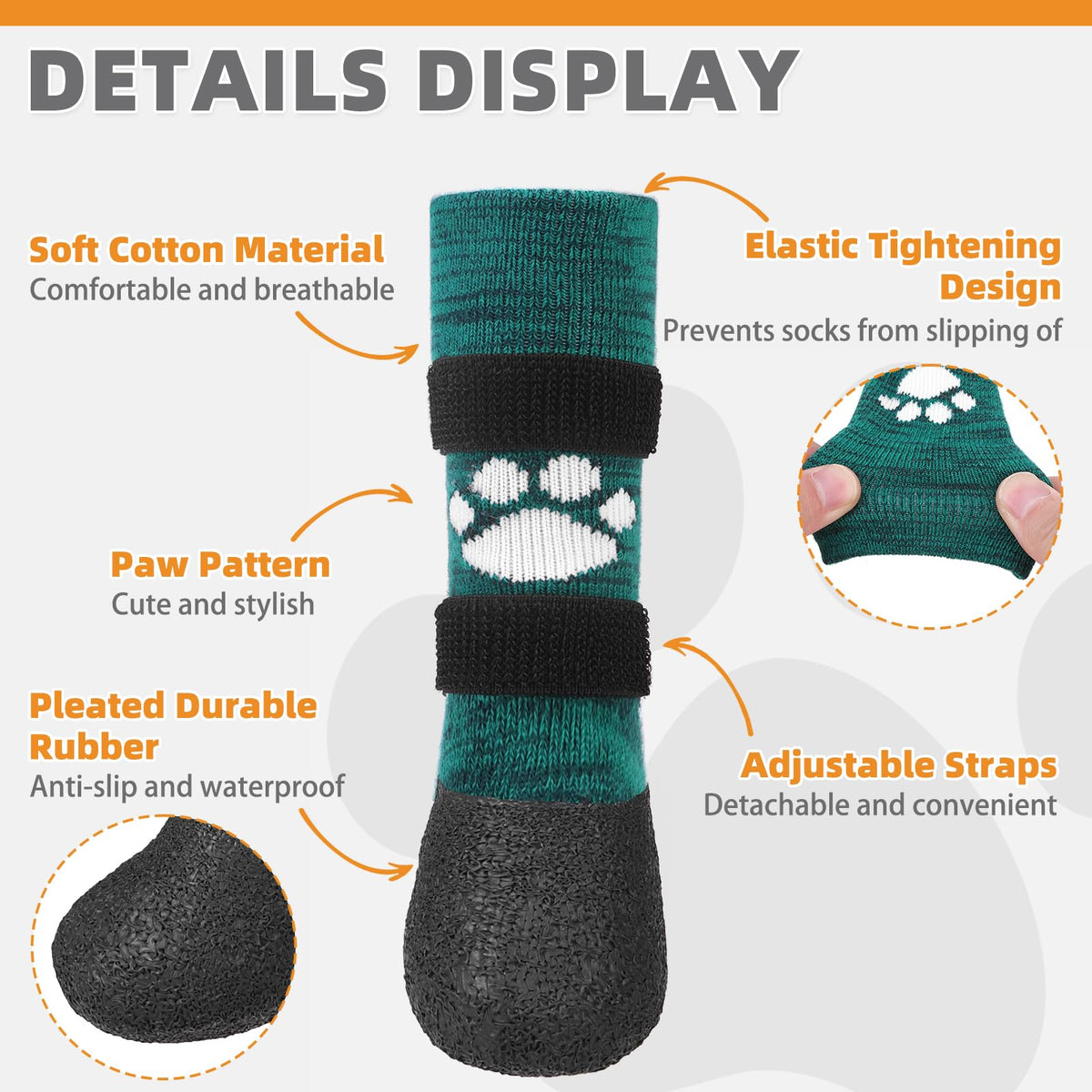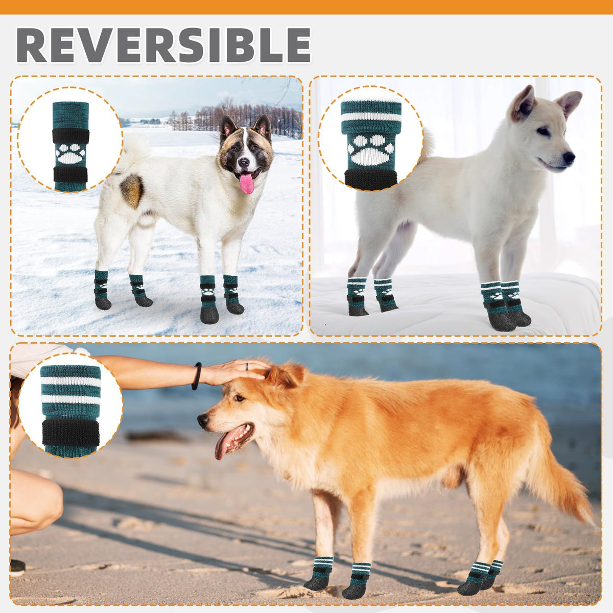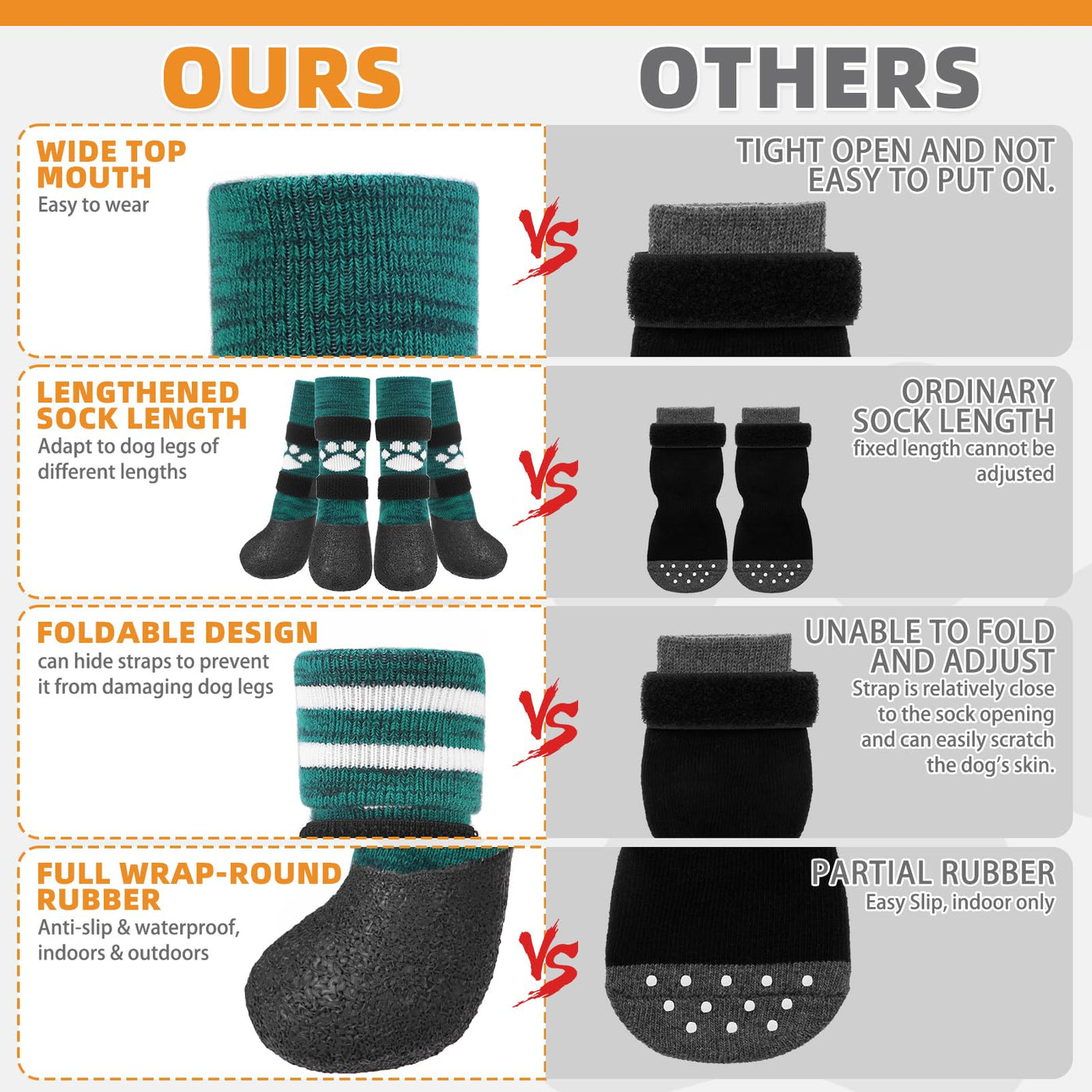 KOOLTAIL Anti Slip Dog Socks to Prevent Licking Paws for Hot/Clod Pavement, Waterproof Long Snow Dog Boots&Paw Protector with St