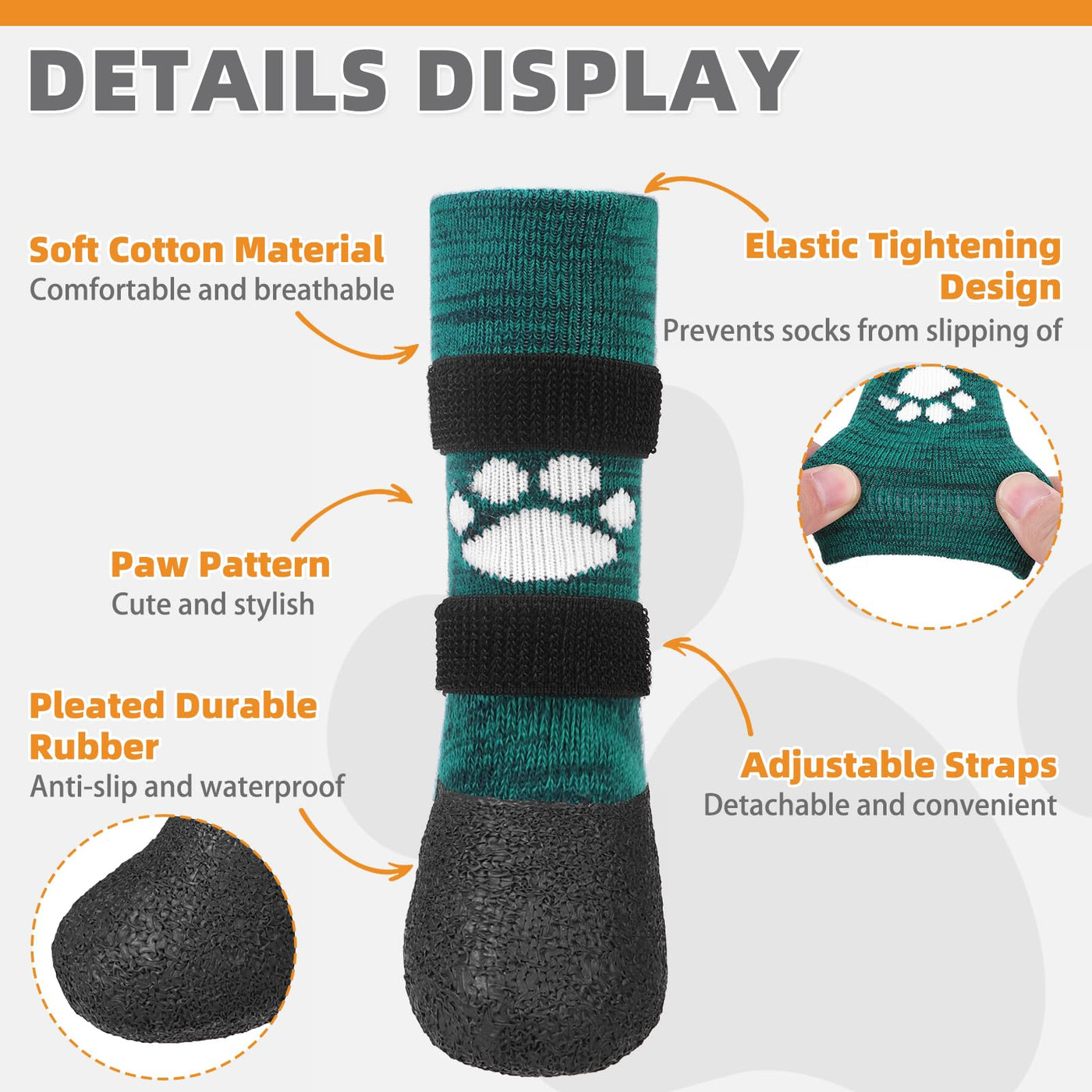 KOOLTAIL Anti Slip Dog Socks to Prevent Licking Paws for Hot/Clod Pavement, Waterproof Long Snow Dog Boots&Paw Protectors with S