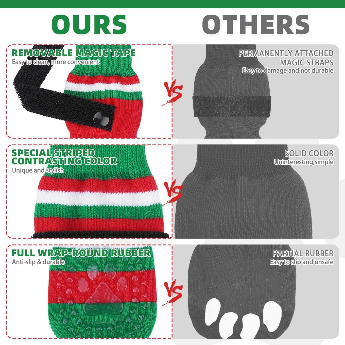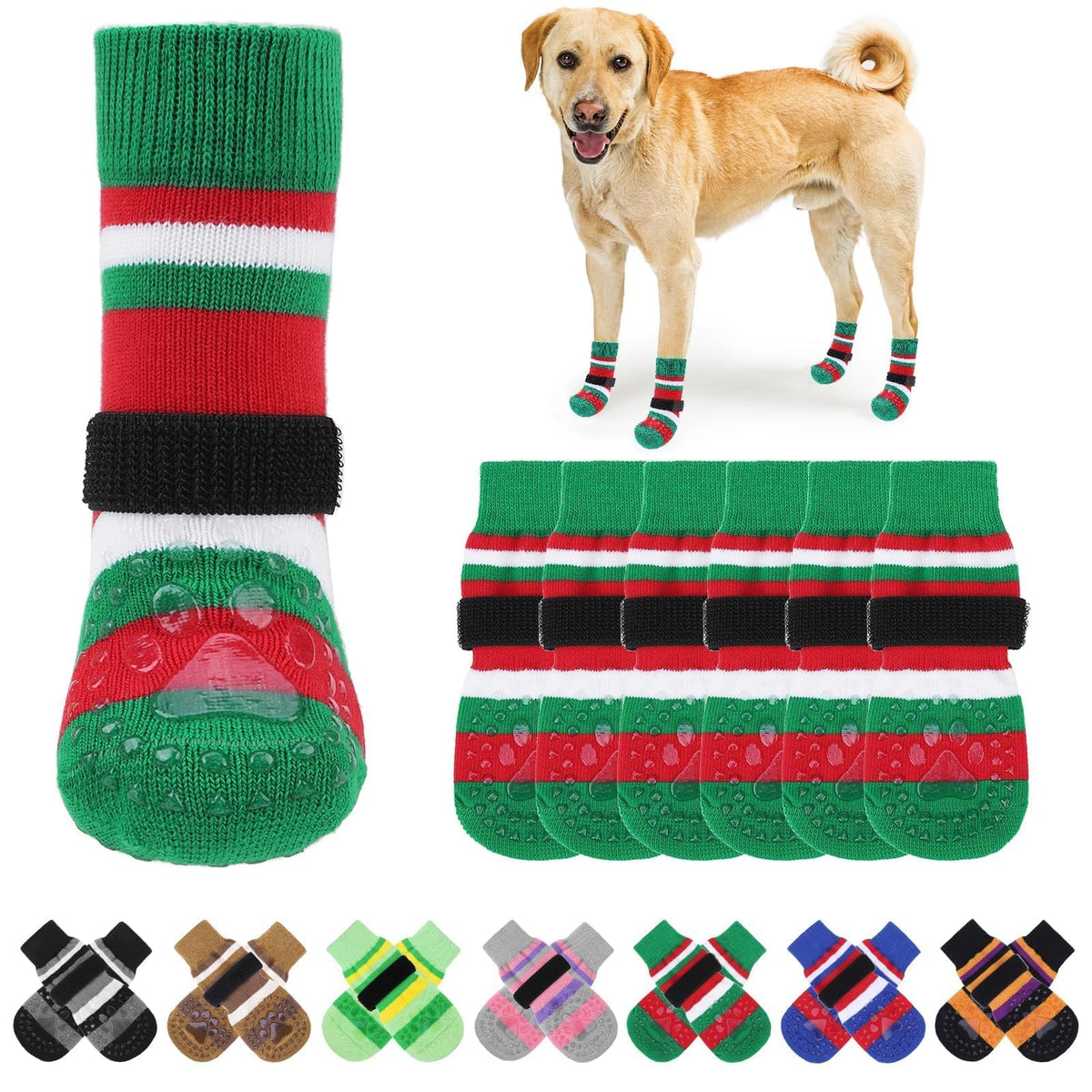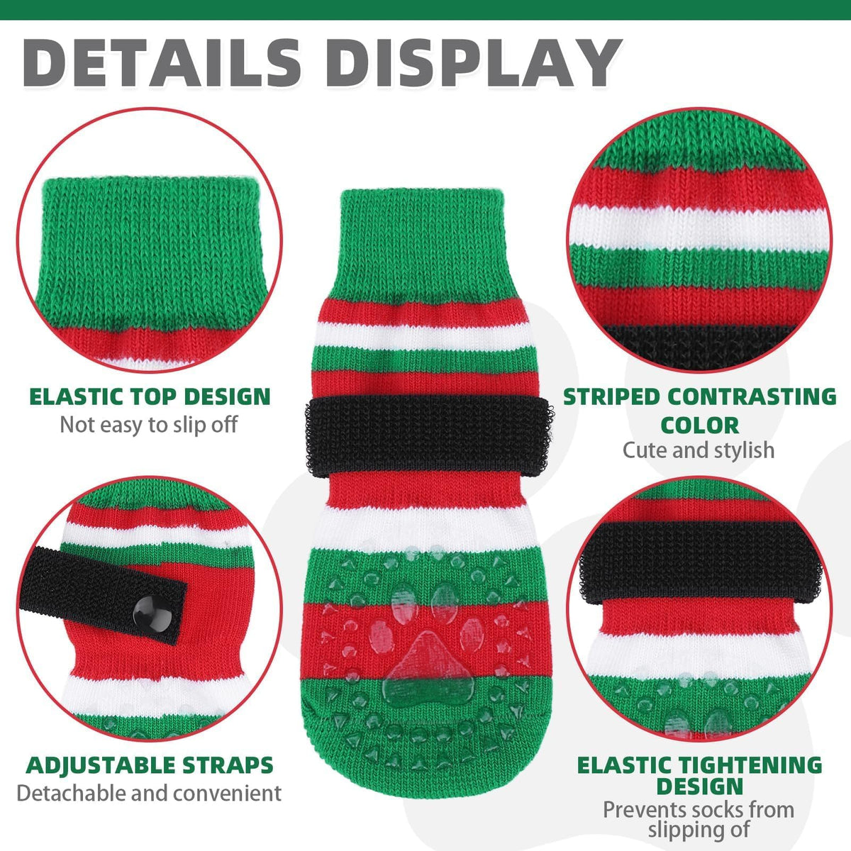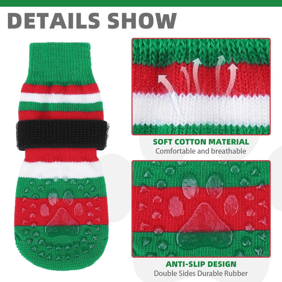 KOOLTAIL Anti Slip Dog Socks to Prevent Licking Paws with Grippers, 3 Pairs Dog Christmas Outfit Paw Protector, Double Sides Str