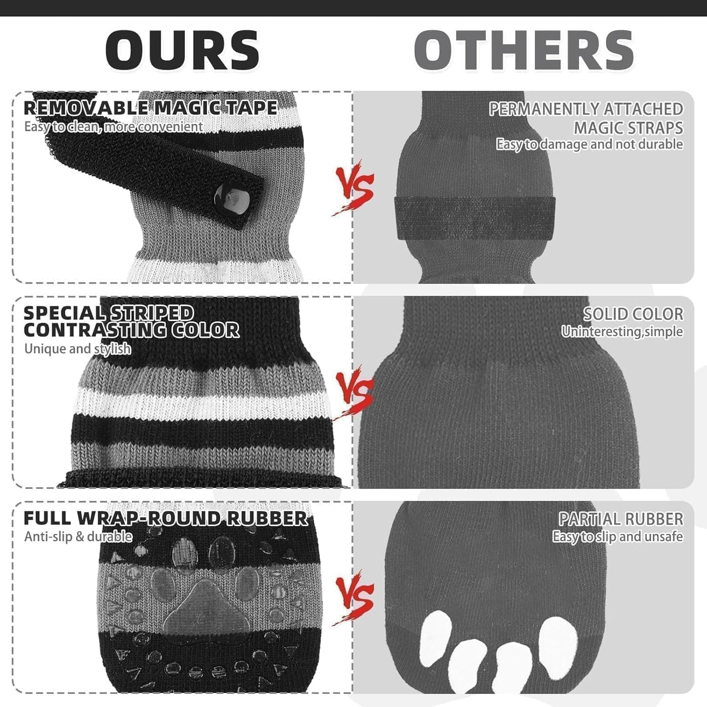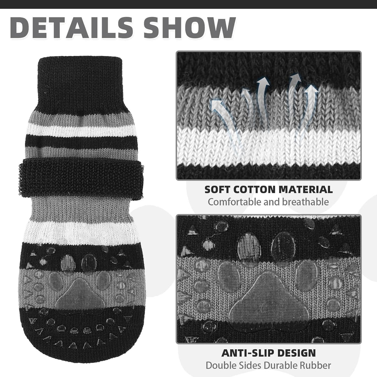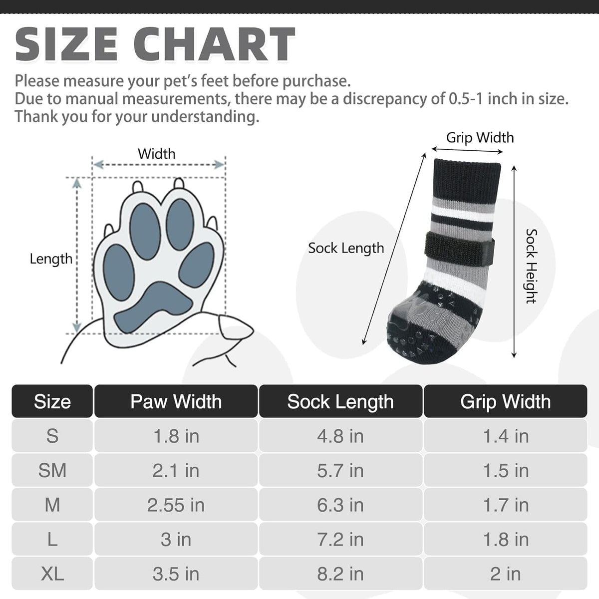 KOOLTAIL Anti Slip Dog Socks to Prevent Licking Paws with Grippers, 3 Pairs Paw Protector with Adjustable Straps, Double Sides S