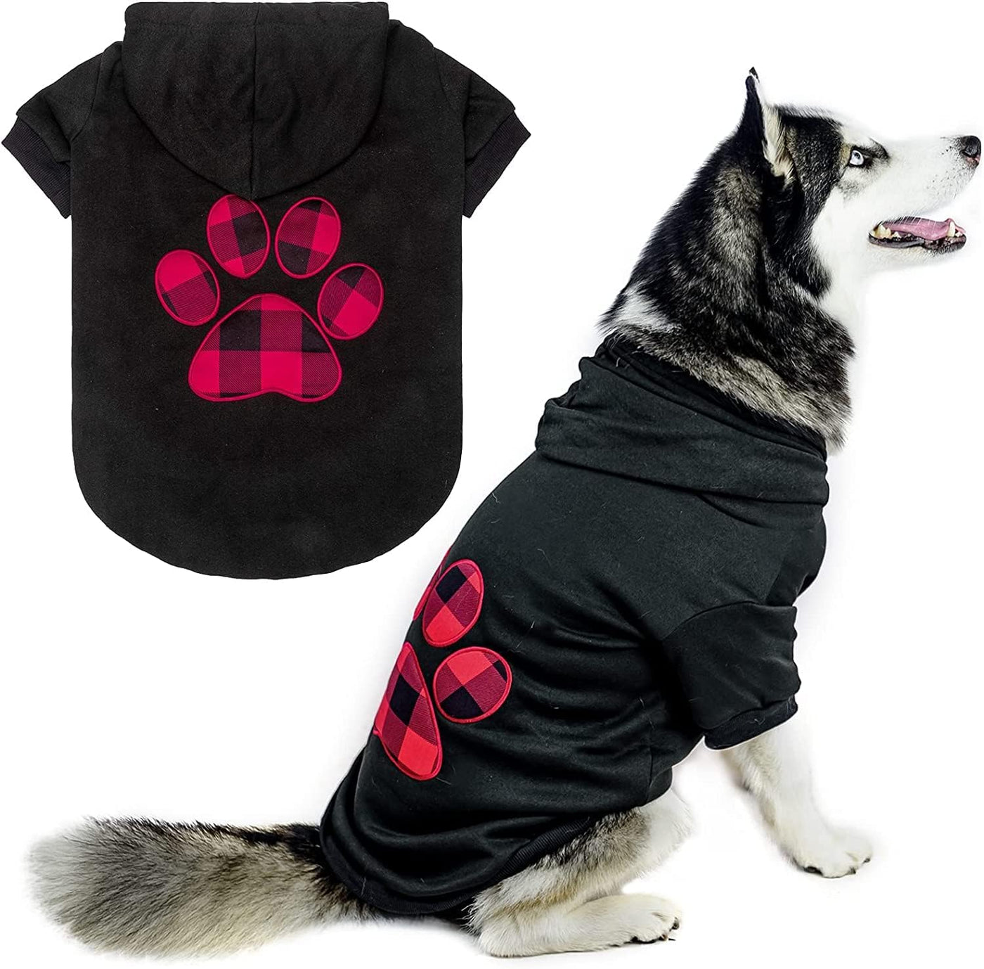 Kooltail Dog Pullover Hoodie With Hat, Pet Cold Weather Clothes With Red And Black Plaid Foot Pattern, For Small Medium Large Dogs