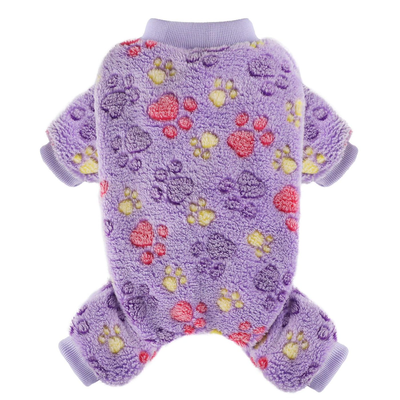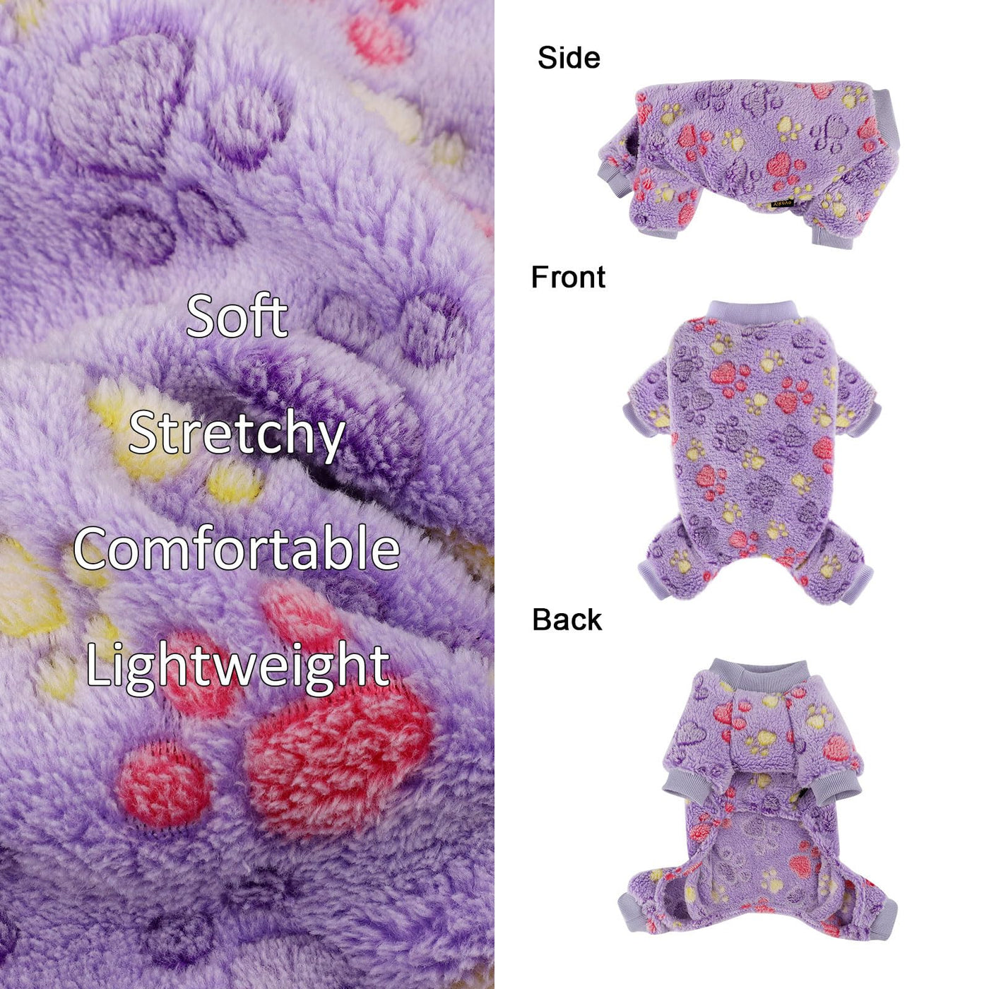 Kosiyi Dog Pajamas Fall Winter Fleece Dog Sweaters For Small Dogs Girl Boy, Lightweight Warm Paw Print Puppy Pajamas Soft Stretc