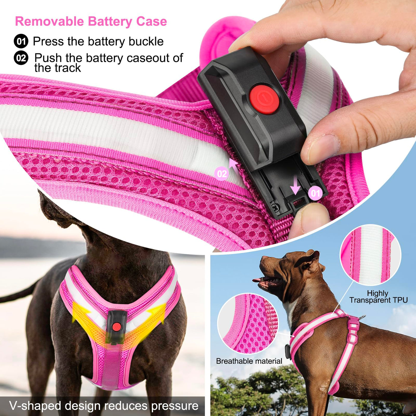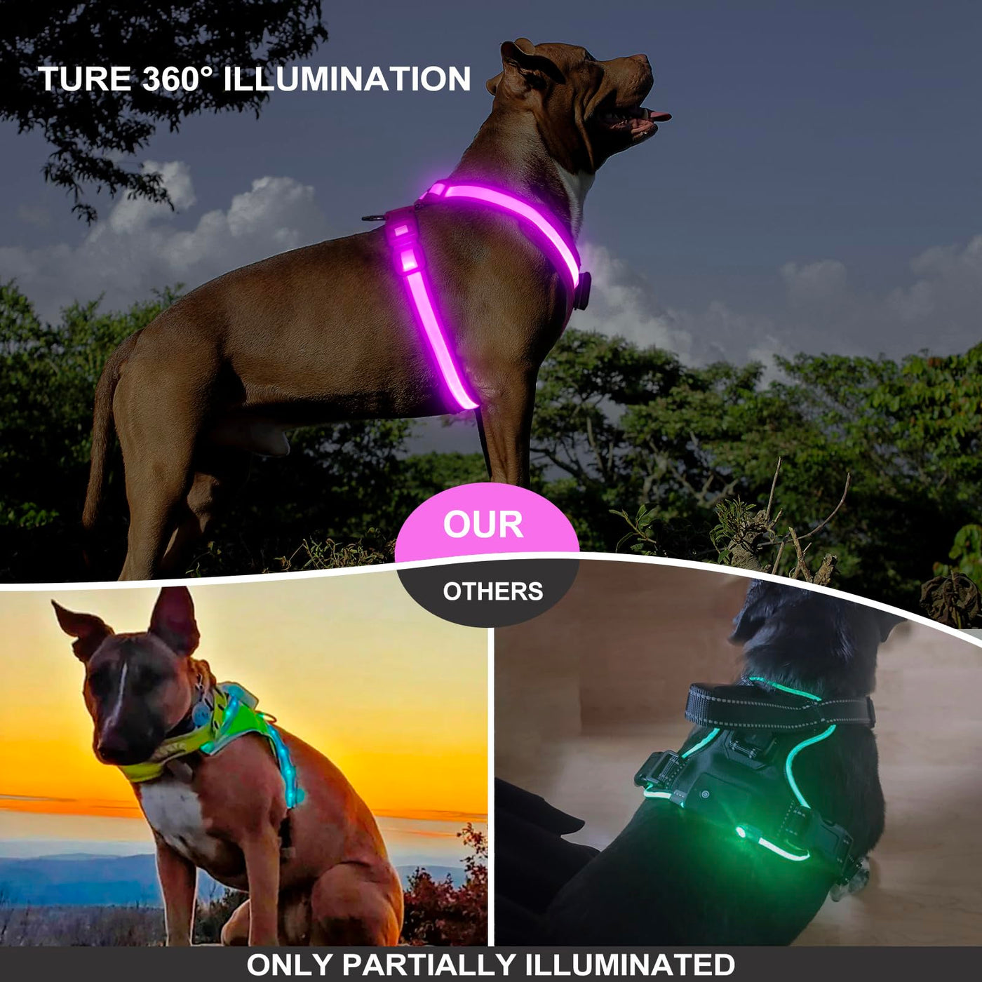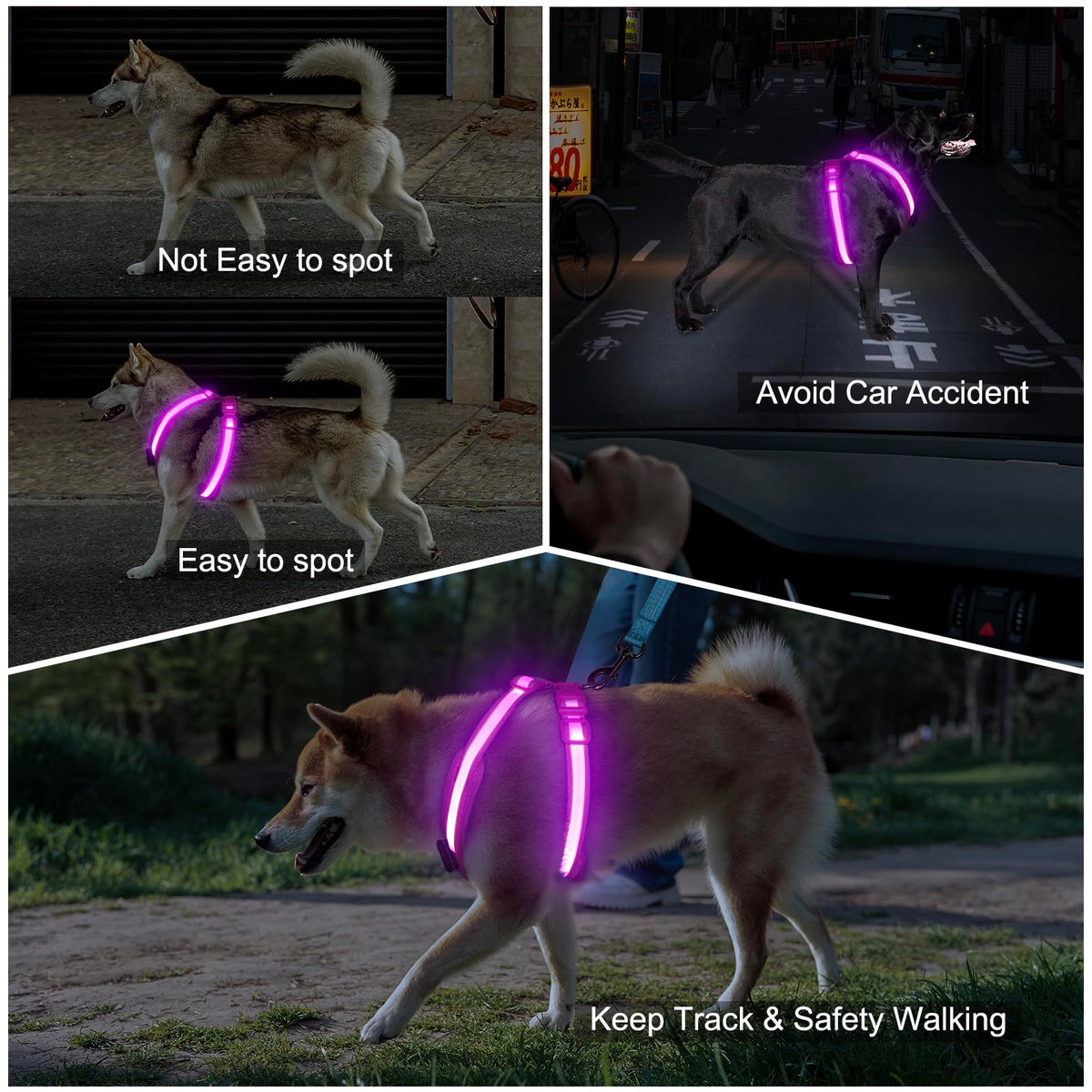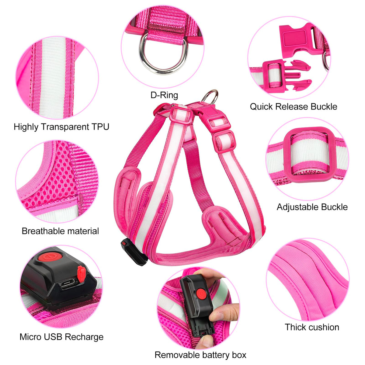 ??Usb Charging &Amp; 2 Lighting Modes:Our Light-Up Dog Harness Only Takes 2 Hours To Fully Charge, And Has Two Light-Up Modes: Steady Light And Slow Flashing. It Can Be Used For 8 Hours In Constant Light Mode And 12 Hours In Slow Flash Mode. A Usb Charging Cable Is Provided. ??360 Illumination &Amp; Night Safety:Our Led Dog Harness Uses Highly Transparent Tpu Strips And The Latest Ultra-Bright Lamp Beads, With A Viewing Distance Of More Than 500M And Effective 360 Light Emitting, Which Can Effectively Ensure The Safety Of Your Dog When Walking At Night. It Can Effectively Avoid Car Accidents, Save Your Dog'S Life, And You Can Easily Find Your Dog At Night. ??Easy To Put &Amp; All Adjustable:Our Light-Up Dog Harness Uses A Double-Buckle Design, So You Can Put It On And Take Off Your Dog Very Easily. And Our Lighted Dog Harness Can Be Adjusted In A Wide Range To Ensure That It Can Be Worn On Your Dog Very Appropriately. ??Super Comfortable &Amp; Well Made:Our Glow In The Dark Dog Harness Adopts A V-Shaped Force-Bearing Design, Which Can Effectively Disperse The Force And Will Not Lock Or Get Stuck In The Dog'S Throat. And The Force-Bearing Part Is Made Of Very Soft Pads, Which Will Not Rub The Dog'S Body, Making It Very Comfortable. ??100% Customer Satisfaction: Such Led Vest For Dogs Is Highly Recommended, We Want You To Love Our Illuminated Dog Harness As Much As We Do. If You Are Not Happy With Our Light Up Dog Harness For Any Reason, Please Return The Products For A New Replacement Or A Full Refund.No Risk Of Order.