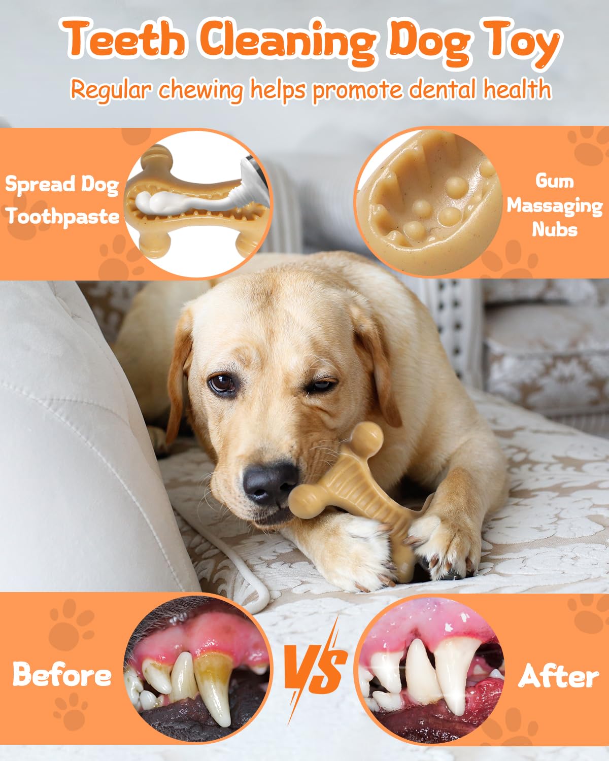 Krauzpet Dog Toys For Aggressive Chewers Large Medium Breed, Interactive Treat Dispenser Chew Toy To Keep Dogs Busy, Indestructi