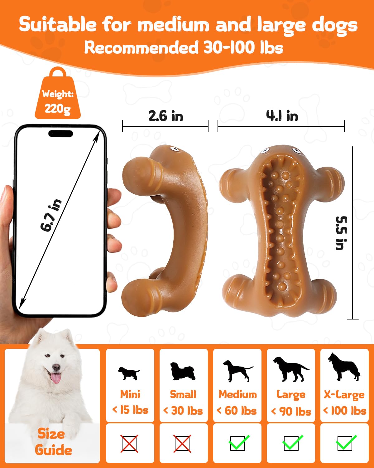 Krauzpet Dog Toys For Aggressive Chewers Large Medium Breed, Interactive Treat Dispensing Chew Toy, Indestructible Tough Nylon T