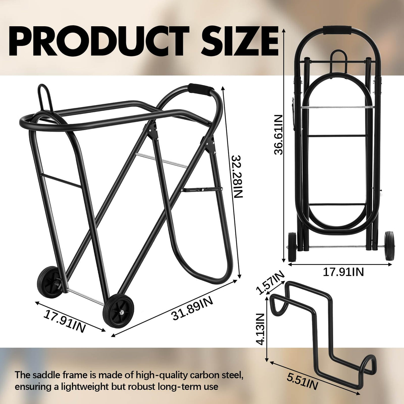 Kritkin Horse Saddle Tack Cart with Wheels, Rolling Iron Heavy Duty Saddle Wheeler with Hooks Foldable Horse Equipments Stable S
