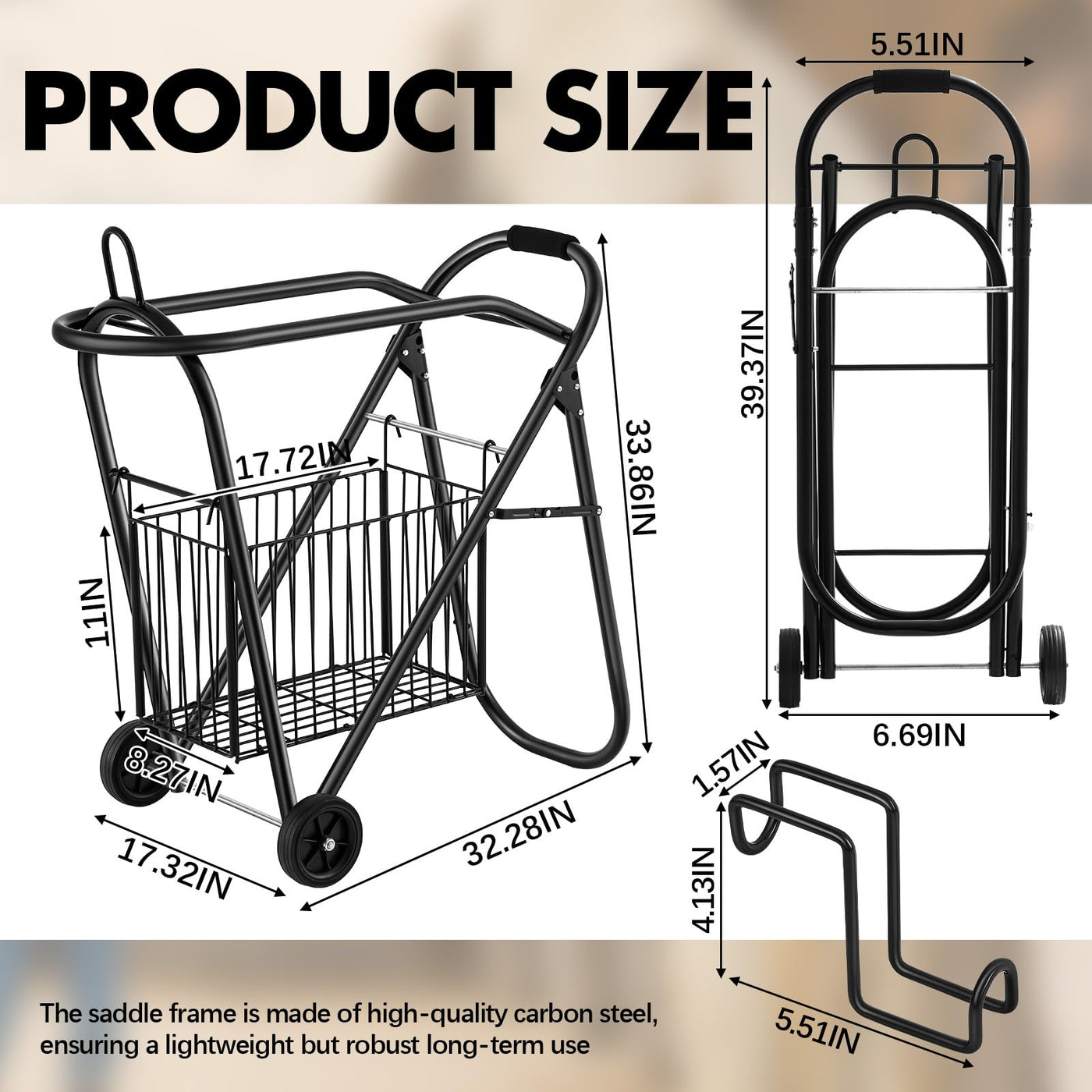 Kritkin Horse Saddle Tack Cart With Wheels, Rolling Iron Heavy Duty Trailer Organizer With Hooks Foldable Horse Cinch Equipments
