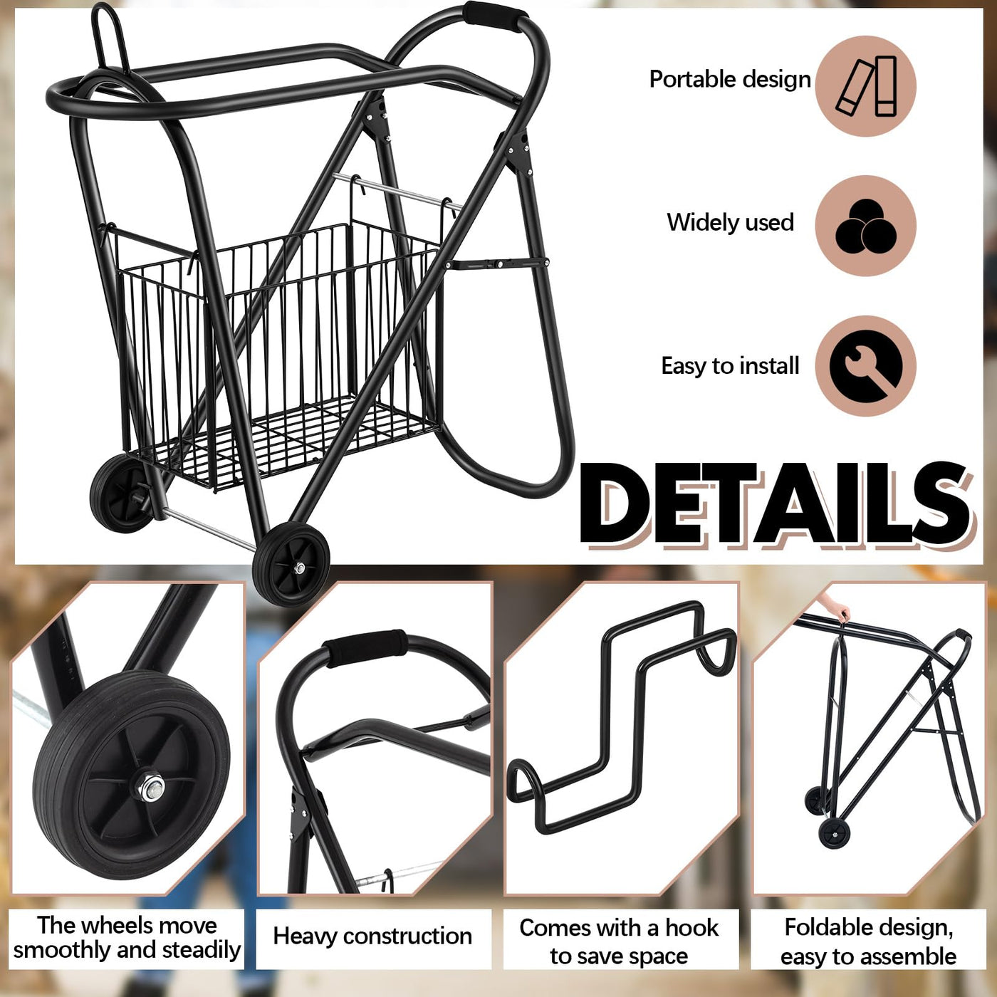 Features: Versatile Storage And Utility: Our Saddle Cart Offers Ample Storage For A Ride Out. The Classic Hook Shape Facilitates Easy Hanging On Doors, Partitions, Fences And More. Suitable For Garages, Barns, Porches, Utility Rooms, Cloakrooms, Etc. Multi-Purpose Use: The Cart Is Not Just For The Saddle. Its Multi-Functional Design Allows You To Store And Transport Your Other Harnesses. This Centralized Storage And Transportation System Brings Convenience To Your Fingertips And Reduces Manual Carrying Stress. Specifications: Material: Iron Color: Black Size: Cart: 33.86 X 32.28 X 17.32 Inches Folded Size: 39.37 X 6.69 X 5.51 Inches Basket: 17.72 X 11.02 X 8.27 Inches Hook: 5.51 X 4.13 X 1.57 Inches Package Includes: 1 X Horse Tack Cart With Wheels Notes: Manual Measurement, Please Allow Slight Errors On Size. The Color May Exist A Slight Difference Due To Different Screen Displays.