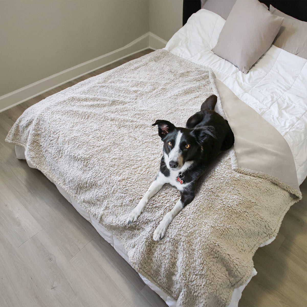 ? Waterproof Pet Blanket Throw For Small Medium Large Dogs Puppy Cats. The Main Goal Of This Waterproof Dog Blanket Is To Prevent Liquid Leaks Through The Blanket. A Waterproof Coating Is Applied Inside The Blanket To Achieve The Goal. However, The Surface Of The Fiber Itself Is Not Waterproof, In Order To Provide A Soft And Comfortable Touch. ?Reversible For Two Different Textures. The Plush Microfleece Side Is Made Of 100% Waterproof Fabric, Plush Sherpa Fleece On The Other Which Is Not Waterproof But No Liquid Will Make It Through To The Other Side. ?Snuggle Up To Your Pets In Softness With This Warm, Cozy, And Heavy-Duty Waterproof Pet Blanket. It Is Very Warm And Soft Suitable During Cold Weather. ?Whether It Be An Ideal Accessory For Indoors, Or Outdoor, And Keeping Your Couch And Sofa, Floor, Or Seat Clean. Protecting Furniture From Stains And Accidents Of All Sorts, Especially Those Due To Pets. Perfect Use Indoors, And Outdoor, And Keeping Your Car, Couch, And Sofa Clean.Comes In Gift Wrap Packaging, Perfect As A Holiday Gift, Thanksgiving Gift, And Christmas Gift.