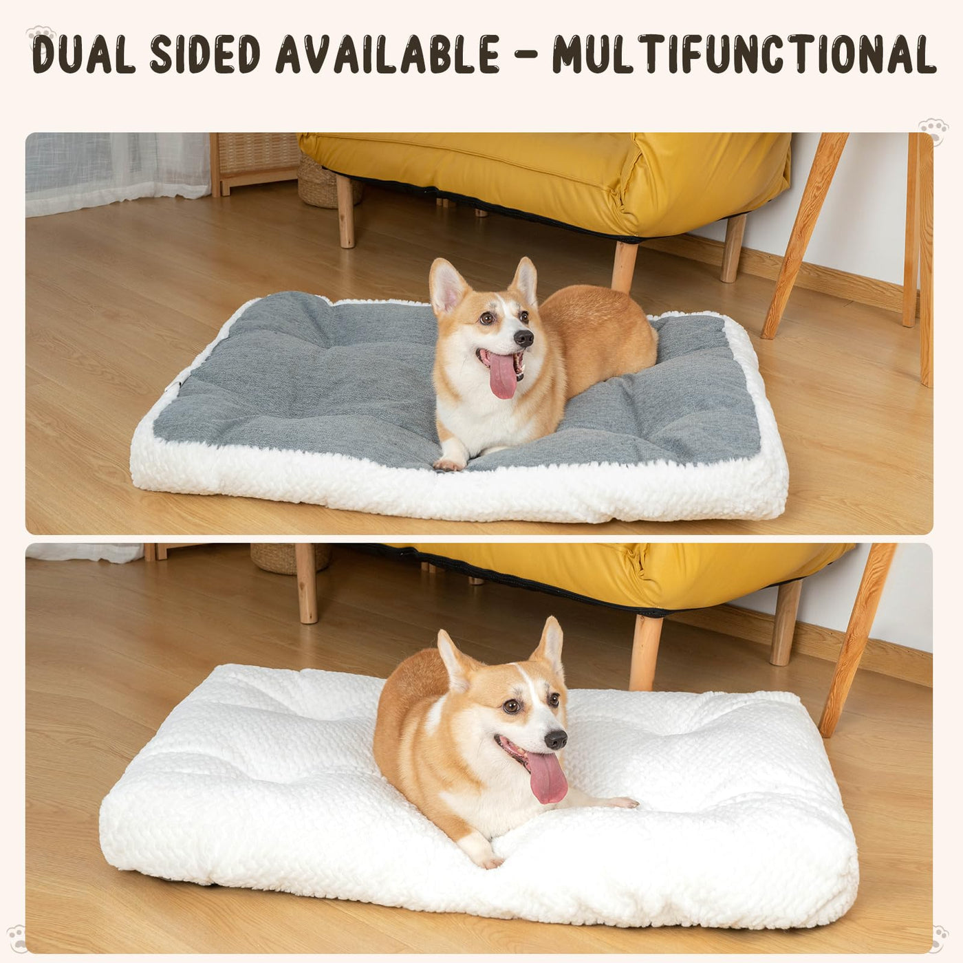 Kroser Deluxe Dog Crate Pad, Machine Washable Pet Cage Mattress Reversible (Cool & Warm), Kennel Bed For Small To Jumbo Dogs, Wh