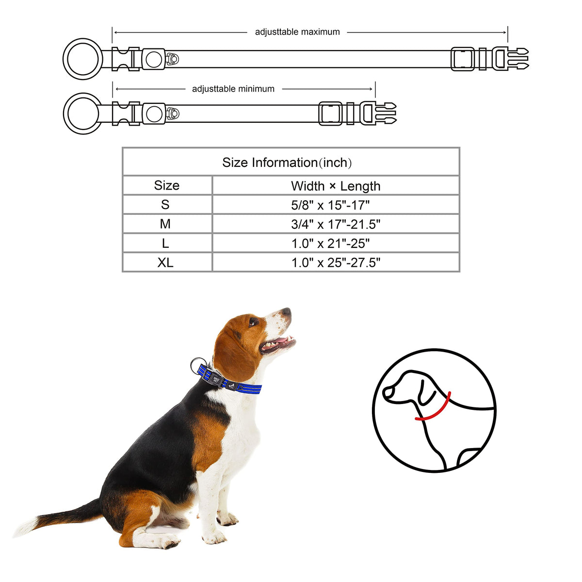 Kruz Pet Kzv006-05Xl Reflective Dog Collar For Small, Medium, Large Dogs, 100% Nylon Adjustable Pet Neck Collar, Heavy Duty O-Ri
