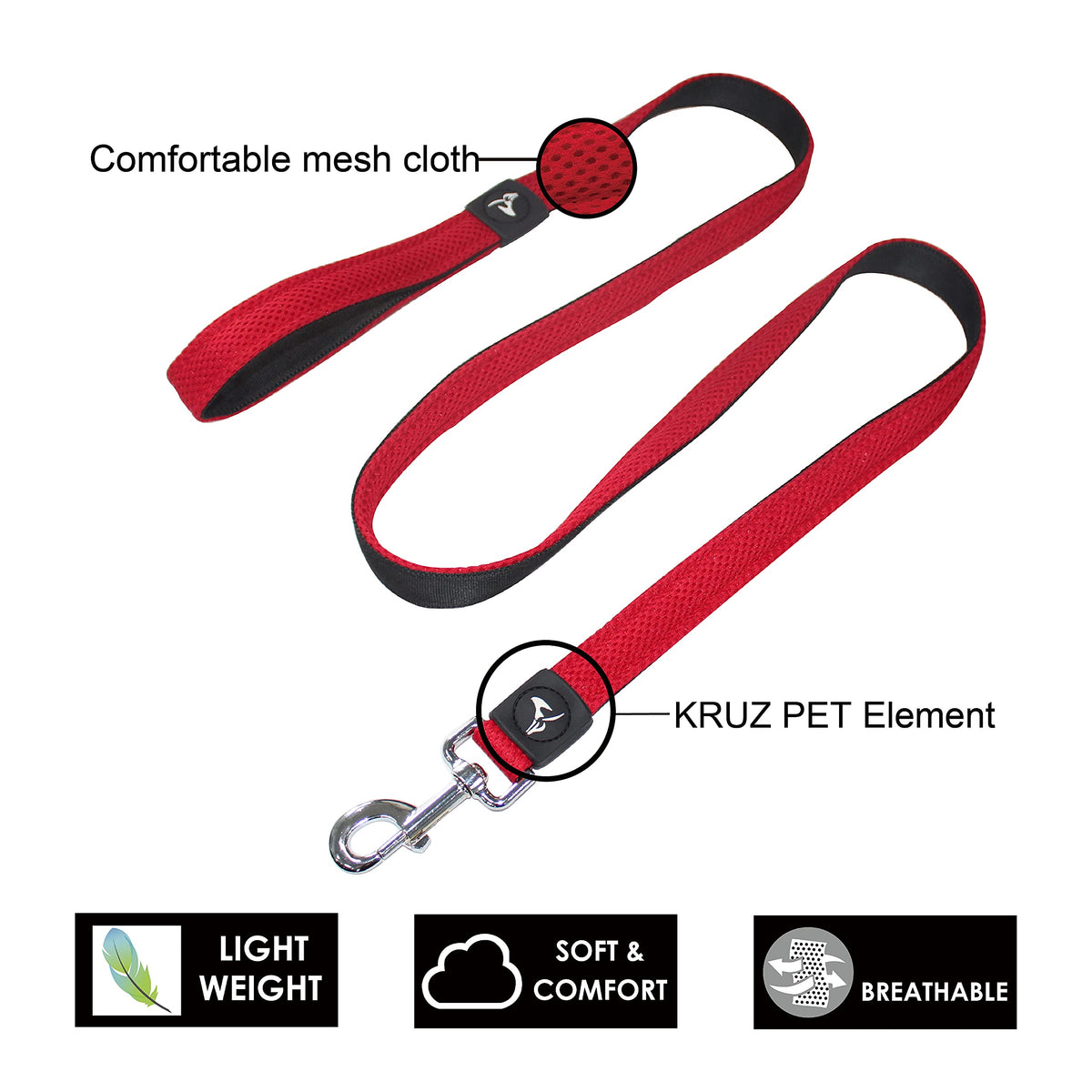 Kruz 5Ft Puffy Mesh Leashthe Kruz Puffy Mesh Leash For Dogs Is Easy-To-Use And Allows For Daily Walking And Training Of Your Pet With Total Control And Comfort. A Super Lightweight And Breathable Dog Leash Made With A Smooth Mesh Front That Provides A Soft, Silky Feel To The Hand. Mesh Leashes Feel Comfortable And Light On Your Dog, And Are Perfect For Everyday Walks. This Leash Is Well Made With A Secure Clasp And Is Comfortable For You To Use. It Attaches Quickly To Any Dog Collar Or Harness, And Will Make Adventures With Your Furry Buddy Much More Fun And Enjoyable.The Dog Leash Is Fitted With A Clip Hook That Tends To Be The Easiest To Connect And Disconnect From The Dog'S Collar Quickly And Easily. The Hooks Are Reliable And Ensure That The Leash Will Stay Securely Attached To The Collar So That Your Pet Cannot Escape And Run. The Multi-Layer Design On The Leash Allows It To Be Able To Withstand High-Tug Pressure From Strong, Pulling Dogs. Its Also Less Likely To Fray If Your Dog Chews On The Leash, So You Can Be Assured It Will Last For A Long Time To Come. A Great Choice Of A Leash For Walking Most Dogs, Small, Medium, Or Large. Designed For Pleasant Walking Experiences With Your Dog With Ease, Comfort, And Peace Of Mind.The Kruz Dog Leashes Come In A Wide Range Of Colors That Will Be Visible In The Day And At Night. We Thought Of Style And Comfort For Dogs Of All Breeds, Shapes, And Varying Sizes.What Sets Us Apart:Puffy Design For A Soft Padded Feelsuper Lightweightloop Handles For Comfort-Grip360 Heavy-Duty Swivel Hook To Prevent Tanglesdual-Layered Air Mesh For Higher Tensile Strength