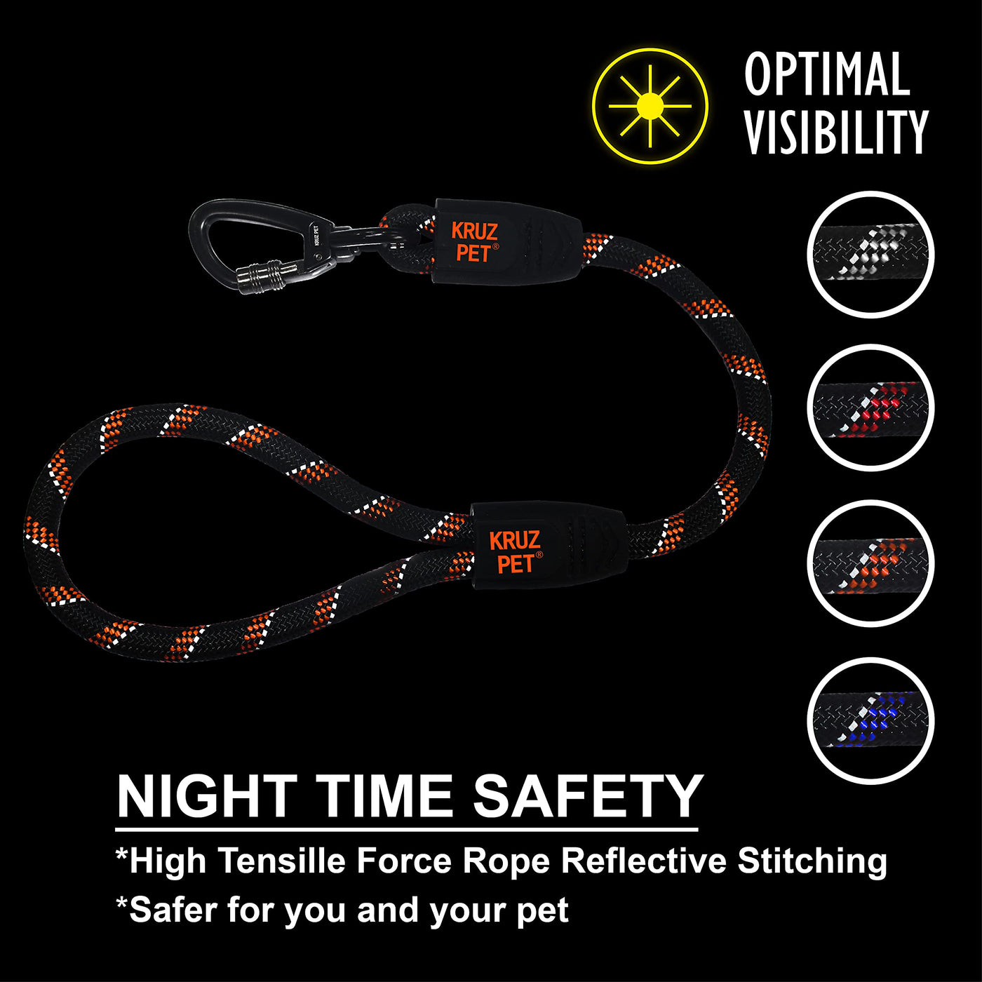 Kruz Short Traffic Leadthe Kruz 20-Inch Short Traffic Lead Will Allow You To Keep Your Dog Close And Is Perfect To Use When Visiting High-Traffic Areas. The Traffic Leash Style Is A Shorter Version Of The Standard Dog Leash. These Leashes Keep Your Dog Nice And Close Which Is Useful For Safety In Various Situations As It Allows You To Have Rapid Control Of Your Dog Whenever Required. Its Shorter Length Helps You Gain Better Control Of Your Pet As Its Less Likely To Get Tangled. Traffic Leashes Are Suitable For Use On Trained Large Or Extra-Large Dogs And Are Great For Guiding And Controlling Strong Dogs, Providing Extra Security. They Will Ensure That You Feel Confident In Those Situations Where You Feel The Need To Keep Your Pet Nearby At All Times, And Are Made For Pleasant City Walking Experiences.This Short Traffic Reflective Rope Leash Is Fitted With A Click & Lock Snap Swivel Hook For Extra Safety. It Easily Attaches To Any Dog Collar Or Harness And Ensures That The Leash Will Stay Securely Attached So That Your Pet Cannot Escape And Run. The Leash Has A Multi-Layer Braided Rope Design For Long-Lasting Durability, And It Will Be Able To Withstand High-Tug Pressure From Strong, Pulling Dogs. Its Also Less Likely To Fray If Your Dog Chews On The Leash, So You Can Be Assured It Will Last For A Long Time To Come.The Kruz Dog Leashes Come In A Wide Range Of Colors That Are Easy To See In The Day And At Night. Choose From An Option Of Bright Colors That Most Suits Your Dogs Personality.What Sets Us Apart:Click And Lock Snap Function For Extra Securitysoft Rubber Handles For Comfort-Grip2 Xtrm Reflective Thread For Boosted Visibilitymulti-Layer Virgin Rope Braided For Higher Tensile Strengthheavy-Duty Polyester Rope Webbing