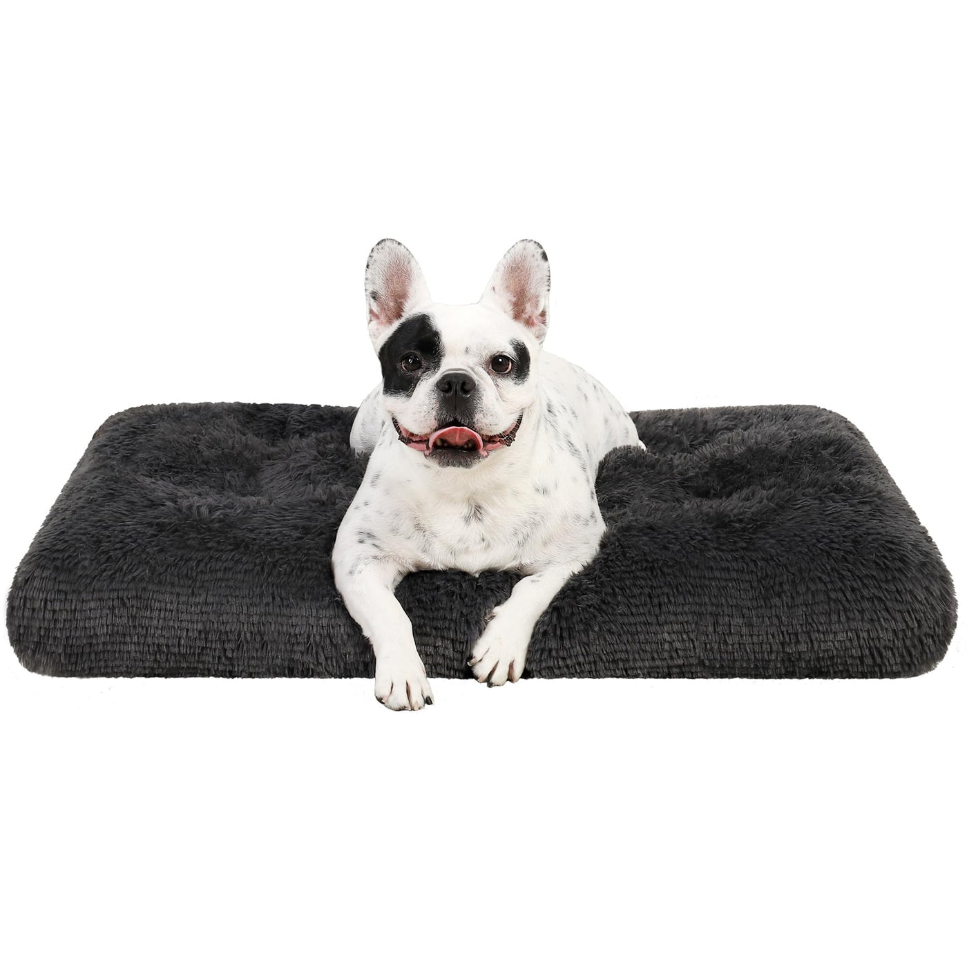 Luxurious Filling - Filled with 3 thick premium polypropylene fiber through 6 keyhole fixations the excellent elasticity supports and long-lasting recovery ability effectively comfort dogs with strong support to bony and joint areas helping relieve joint pain body aches and arthritis cozy Plush Surface - Our dog bed adopts premium long plush as the surface material which is skin-friendly comfortable and warm in cold weather ensures your little furry friend is surrounded by love & warmth helps them to calm down faster ease anxiety and sleep well Non-Slip Pad Design - This dog crate bed is equipped with an upgraded ANTI-SLIP & ANTI-ScRATcH bottom which prevents your dog bed from moving when your pets step on or off they will feel secure and happy Machine Washable - Thanks to the 6-keyhole fixation and high-quality filling our kennel pad can be fully washed by hand or washing machine and can remain in shape after multiple washes Let your pets enjoy a breathable clean and hygienic crate bed Multi-Purpose Dog Bed - This durable dog mat measures 23L x 18W x 3H for dogs up to 25lbs it can be used as a crate bed dog pillow kennel bed cage bed crate pad even as a dog travel bed in a car or truck It arrives as a vacuum-packed bed in a box so pat it or let it inflate for about 24 hours before your dog uses it