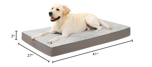 Ksiia Orthopedic Dog Bed, Waterproof, 41 X 27 Inch, Gray, Deluxe Plush, Removable Cover, Durable Zipper, Orthopedic Foam, 3-Inch Thick, For Dogs Up To 80Lbs
