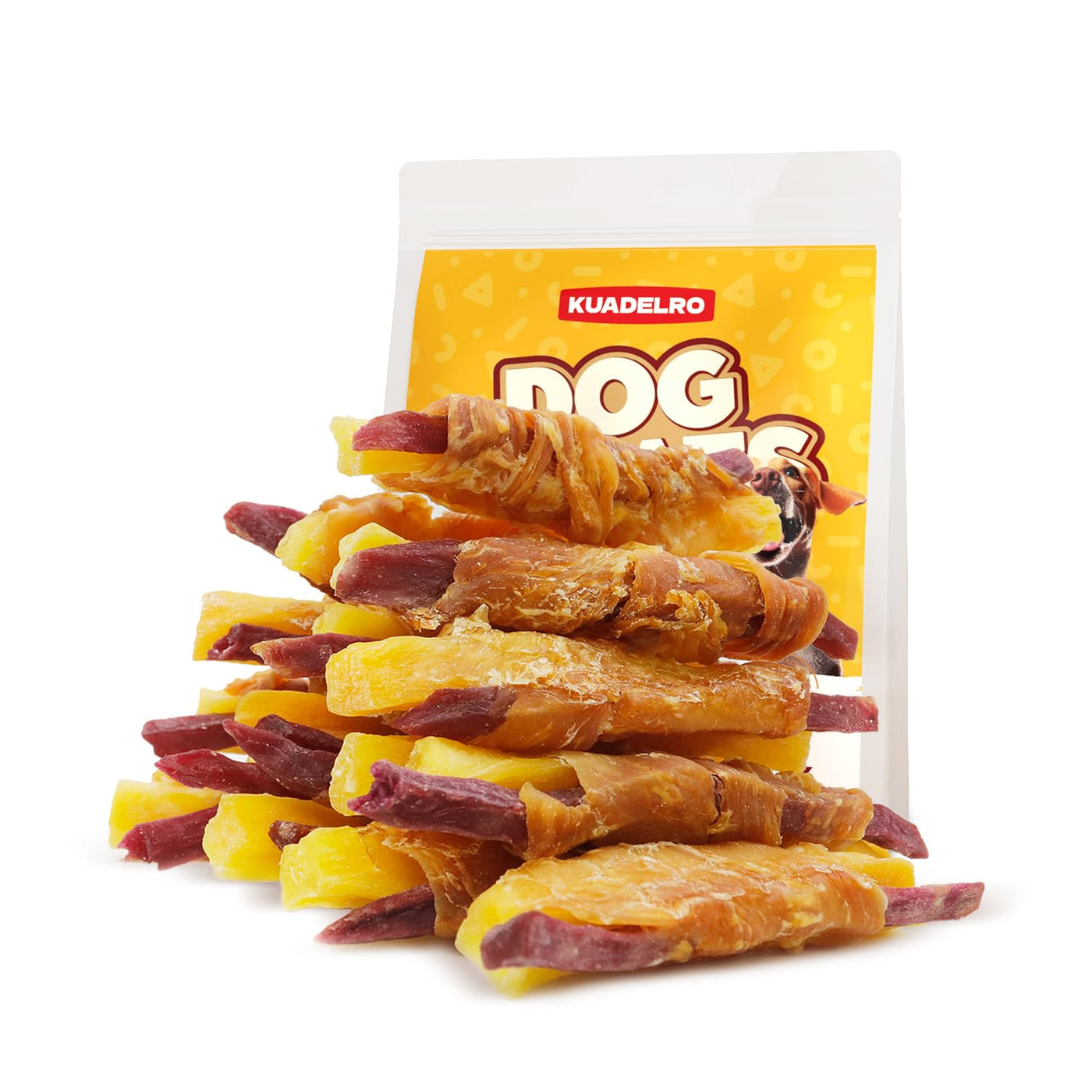 KUADELRO Chicken Wrapped Double Sweet Potato Dog Treats, Real Chicken Jerky Training Treats High Protein Dog Soft Chews for Smal