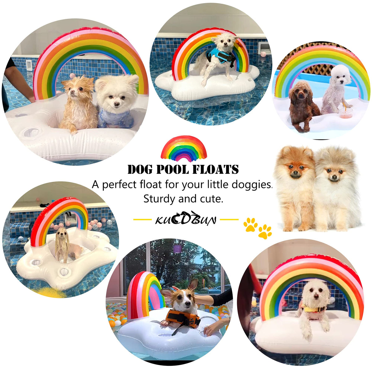 Kucdbun Dog Float Toys Gives Your Dog More Funmultiple Ways To Play With The Dog Water Toy Set Help Bring Enjoyable Experience And A Loving Family Life With Pet. As A Good Interactive Dog Toy, Not Only Strengthen The Relationship Between You And Your Pet, But Also Train Your Dogs To Improve Their Various Abilities, Intelligence, Jumping, Reaction Ability Etc.Kucdbun Dog Pool Floats Set Made Of Safe And Non-Toxic Material, Great For Small Dogs, Like Chihuahua, Poodle, Yorkie, Dachshund, Pomeranian Etc, And Other Small Animal. A Simple Way To Make Your Pet Happy When Swimming. Product Featuremade From Safe, Eco-Friendly, Non-Toxic Materials.Enable You And Your Family To Enjoy Happy Interactive Time With Pets.Perfect Float For Puppy Little Doggies, Or Small Adult Sized Dogs.Carried Drinks And Your Fur Friend Perfectly.Lightweight And Portable For Easy Play Anywhere.Easy To Inflate And Deflate. Inflated By Mouth Or Air Pump.Package Includes:1 Rainbow Cloud Dog Inflatable Pool Float Holder 1 Coconut Tree Inflatable Drink Holder1 Coconut Tree Inflatable Drink Holder1 Flamingo Inflatable Drink Holder 1 Collapsible Dog Bowl5 Bright Colors Ball Pit1 Carry Bagwarm Tip: 1. Inflate Dog Pool Floats To About 90%, Please Dont Over Inflate To Avoid Of Bursting.2. Keep Them Away From Sharp Objects, Otherwise Large Cuts May Be Irreparable.3. Proper Supervision Is Advised When Pet Playing With The Dog Toys Pack To Ensure No Accidental Swallowing.