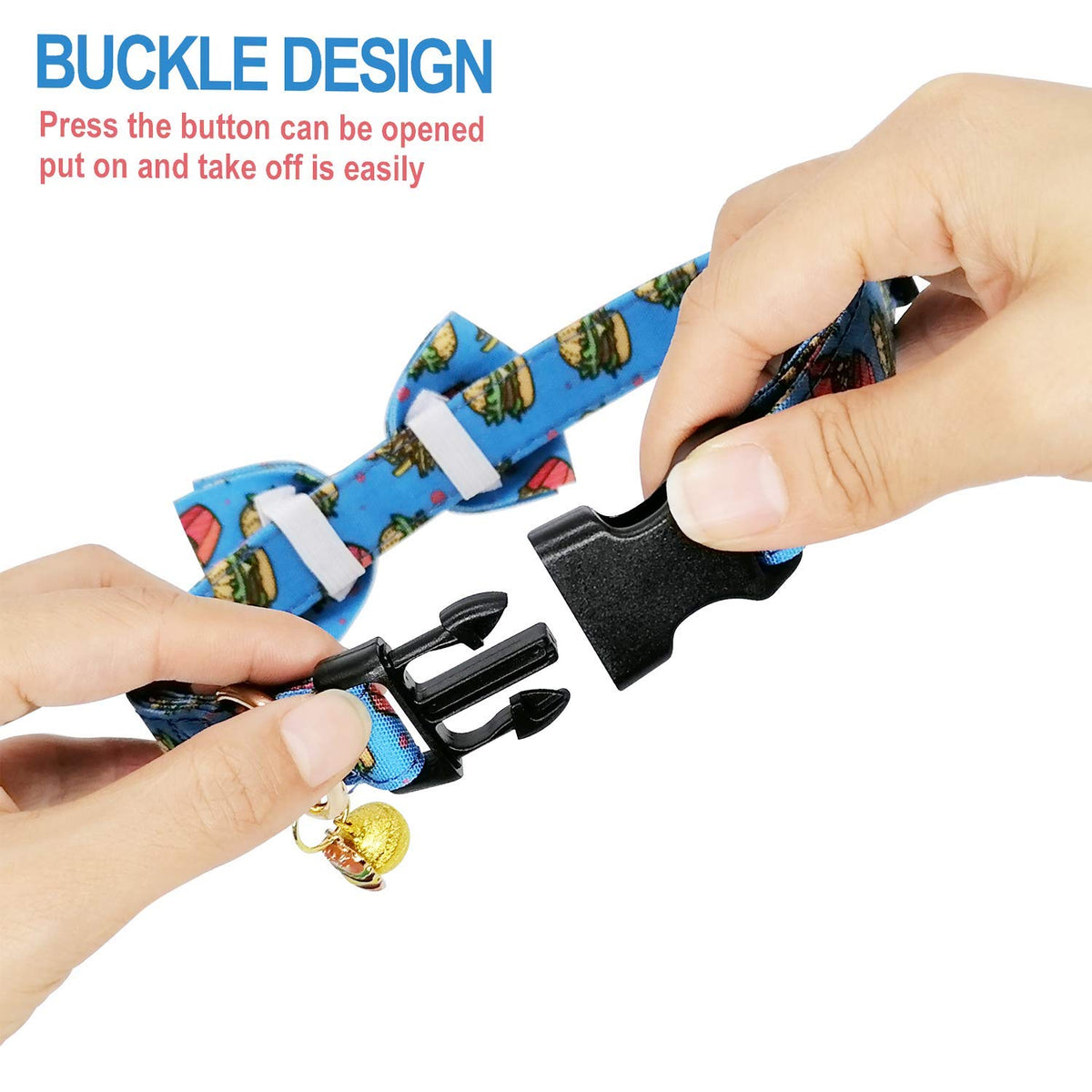 KUDES 2 Pack/ Set Hamburger and Sushi Print Dog Collars with Bow Tie and Bells, Fashion and Cute Pet Collars for Male Female Small / Medium / Large Dogs and Cats, Best Gift for your lovely pet in Holiday and Daily Wearing! Your pet will love it and the bow tie will make your little one look adorable and attractive, you can chose it with 3 different sizes , and it is adjustable that you can customize bowtie dog collars perfectly to the neck of your favorite! Made of the environmentally material, the dog collar can be put on and taken off easily. Notice: Due to manual measurement, there are 0.2' - 0.5' error. Pleasure measure carefully before ordering. Type: Printed Pet Collars Pattern:Hamburger, Pizza Size Information: Small Size: Neck Girth: 10'-14', Width: 0.59' Medium Size: Neck Girth: 11'-18', Width: 0.79' Large Size: Neck Girth:14'-22', Width: 0.98' Package Included: 1x Hamburger Dog Collars 1x Sushi Bowtie Dog Collar